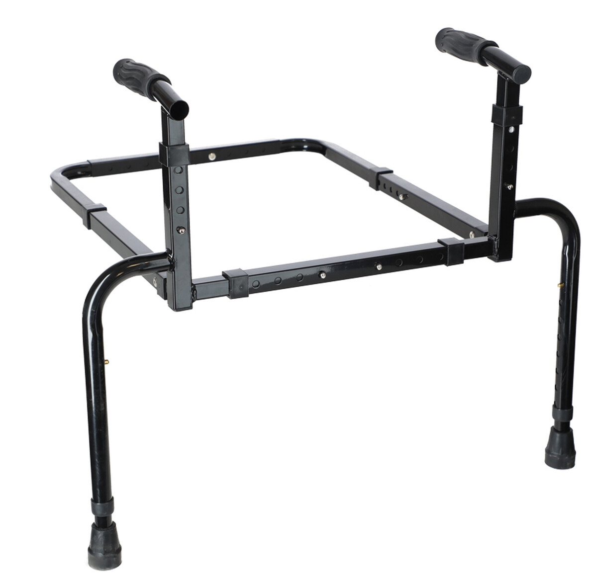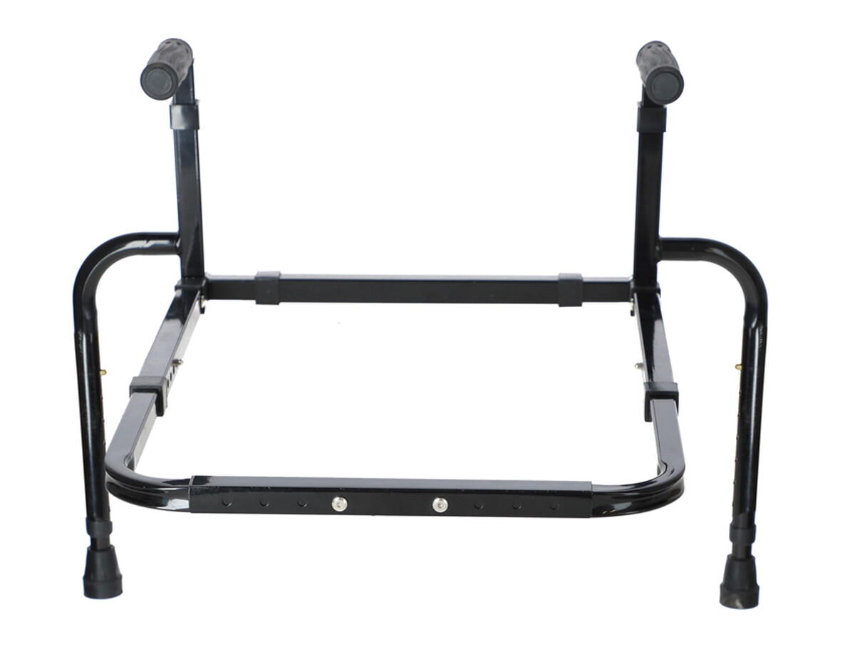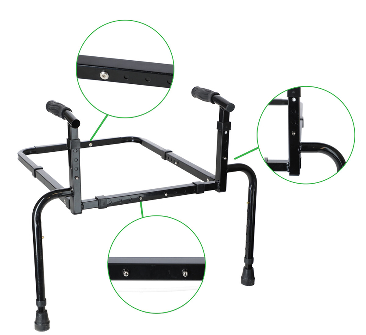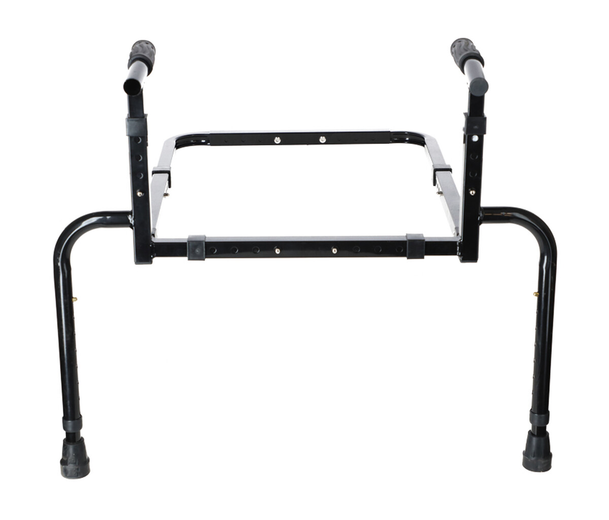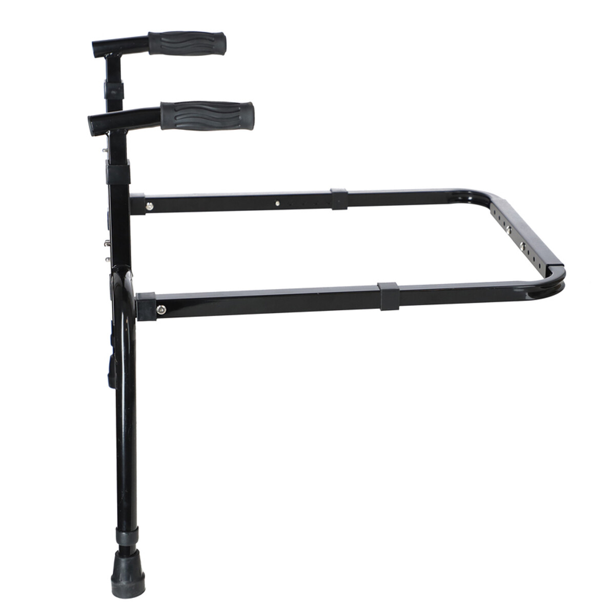 Bezpečnost při používání zajistí protiskluzové ergonomické rukověti s TPR povrchem a gumové nástavce na nožičkách, díky kterým madlo zůstává na místě i po plném přenesení váhy na rám.