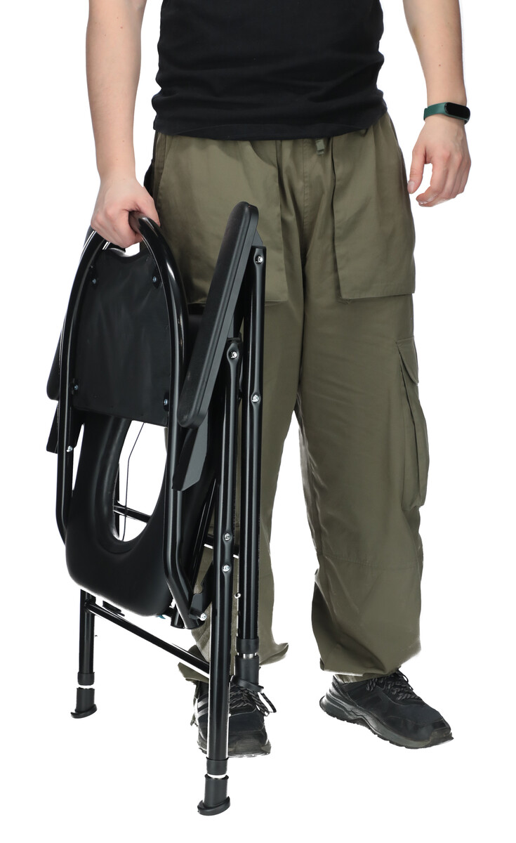 Toaletní stolička se dá také jednoduše rozložit a složit, a tedy kompaktně skladovat. Stabilitu při používání zabezpečuje konstrukce z ocelového rámu a gumové nástavce ve spodní části konstrukce, chrání před uklouznutím.