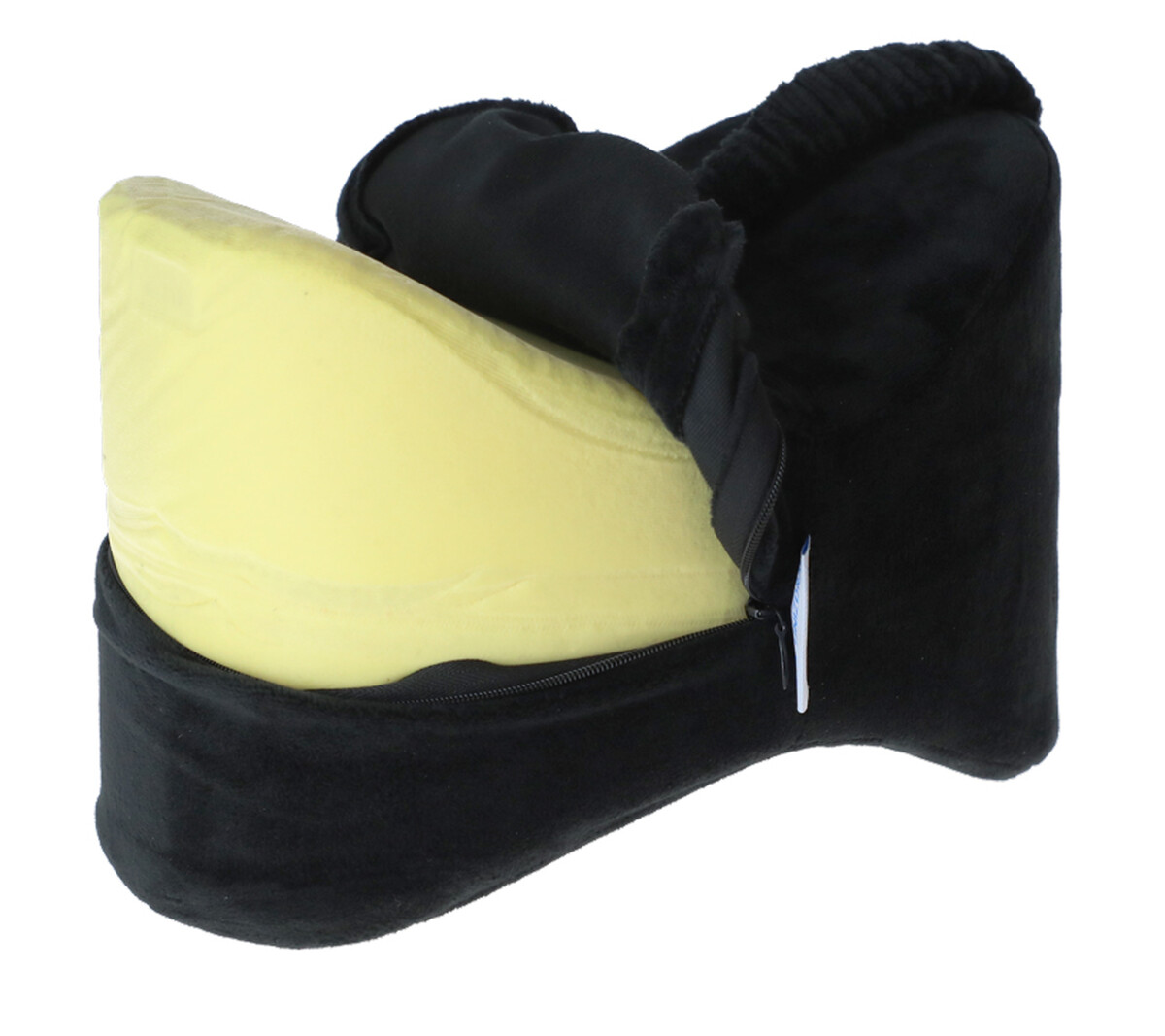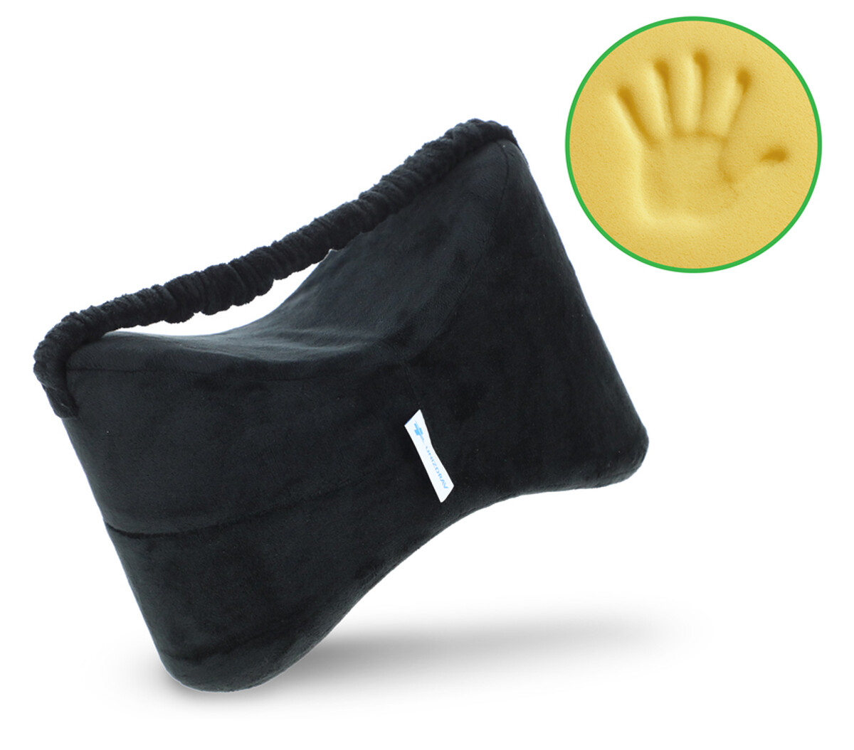 Separátor kolen s elastickou gumičkou a výplní z paměťové pěny podporuje správnou polohu kloubů, čímž efektivně zmírňuje tlak na boky a kolena.