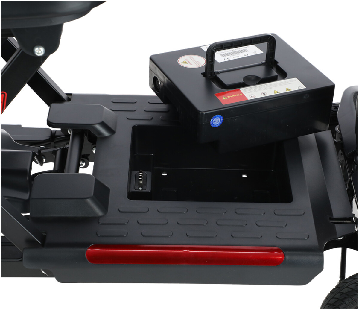 Elektrický vozík je vybaven vyjímatelnou lithiovou baterií s kapacitou 25 Ah, což usnadňuje nabíjení a případnou výměnu. Skútr je teda možné nabíjet buď přímo nebo baterii jednoduše vyjmout a nabít kdekoli jinde, kde je to pohodlnější.