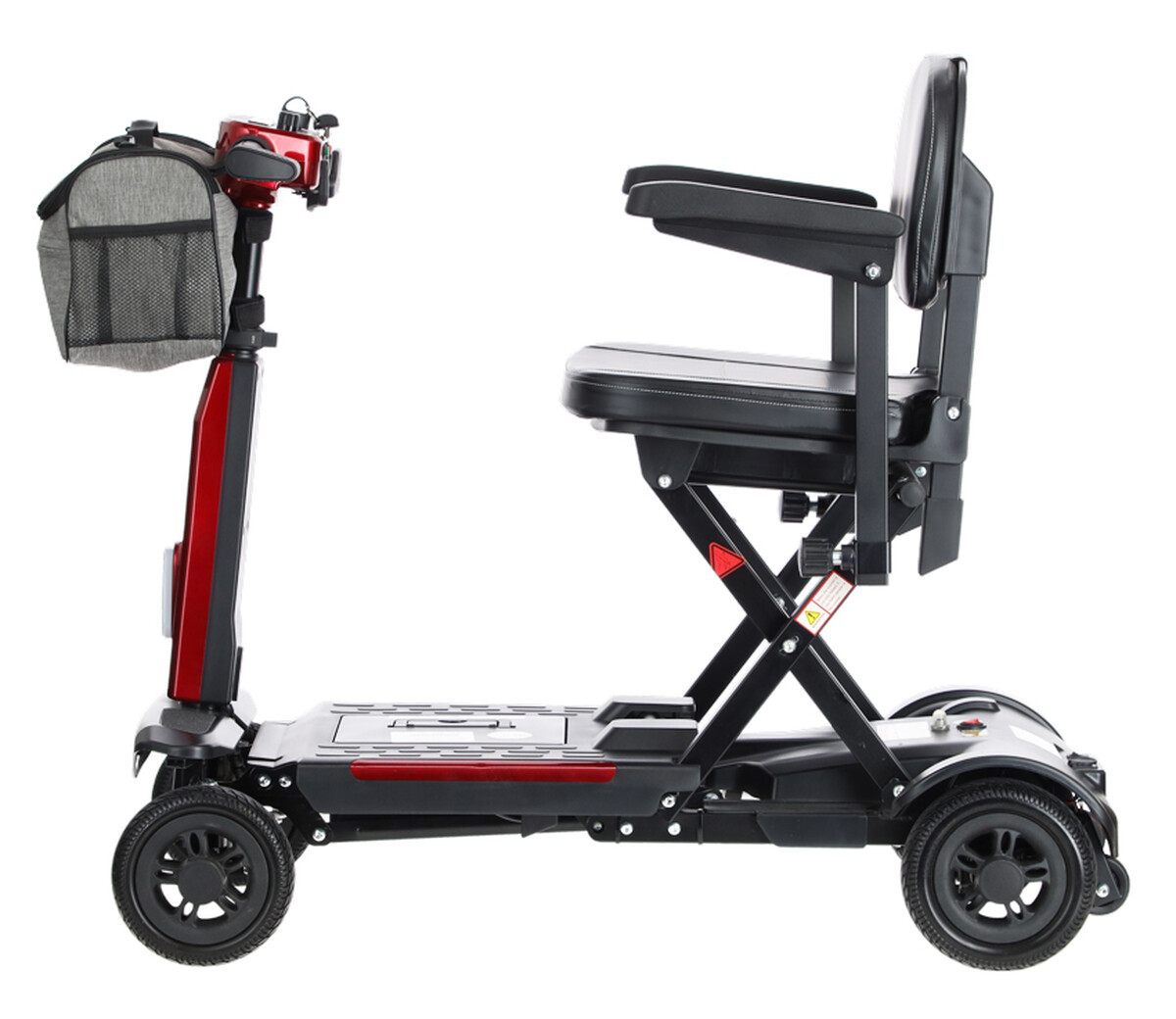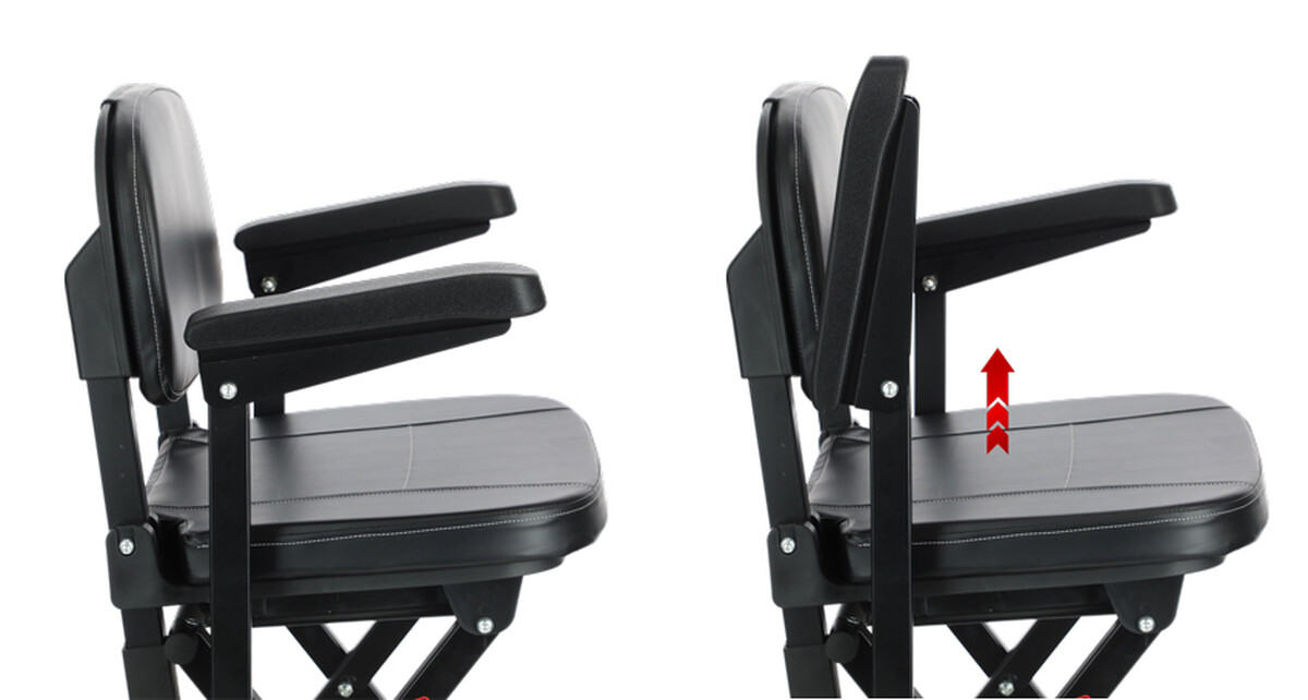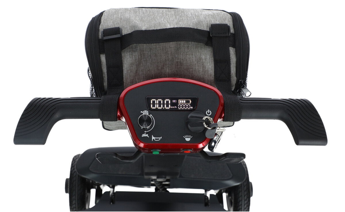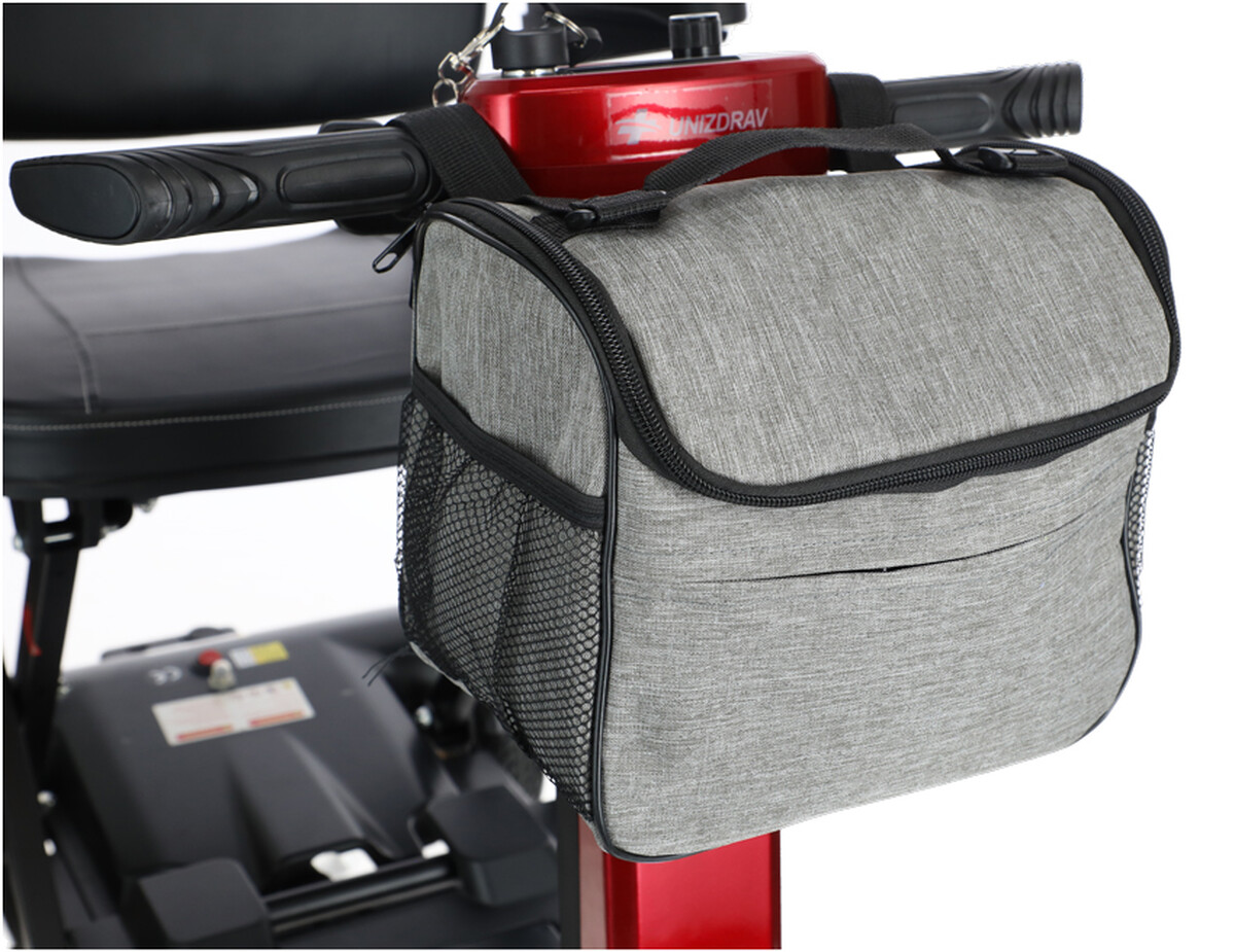 Jízdu zpříjemňuje měkké čalouněné sedadlo, sklápěcí opěrky na ruce a dostatečně velký prostor na nohy. Skvělým doplňkem je i příruční taška na drobnosti, které potřebujete mít hned po ruce.