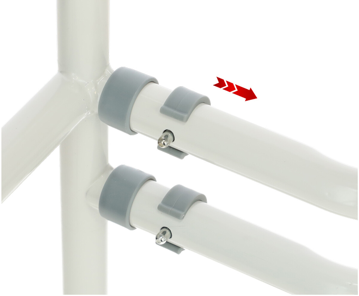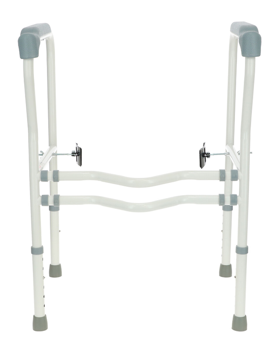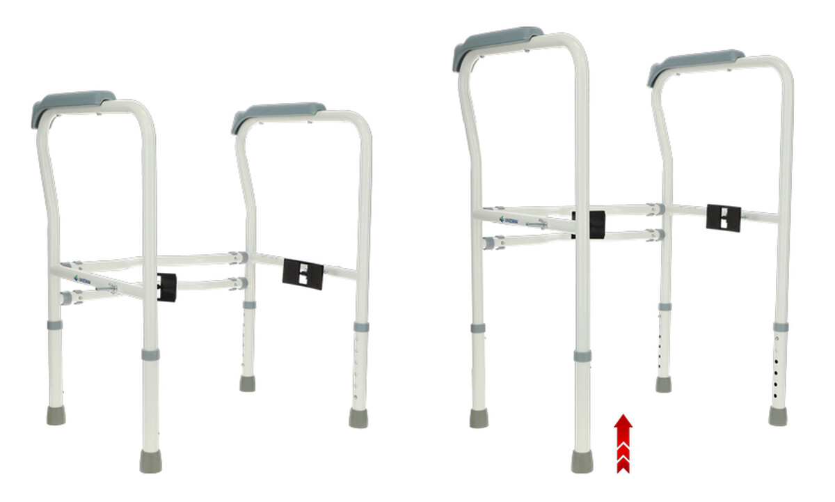 Samostatně stojící vyhotovení nevyžaduje složitou instalaci. Opora se jednoduše poskládá a přisune k toaletě. Výšku toaletní opory je možné přizpůsobit v 6 bodech a šířku v 2 bodech, díky tomu vyhoví individuálním potřebám. Na pevnější uchopení poslouží rychloupínací svorky s ochrannými podložkami, které ochrání povrch toalety před poškrábáním.