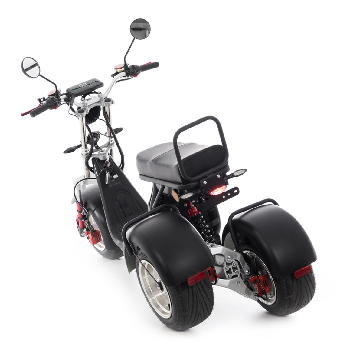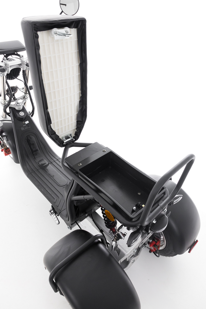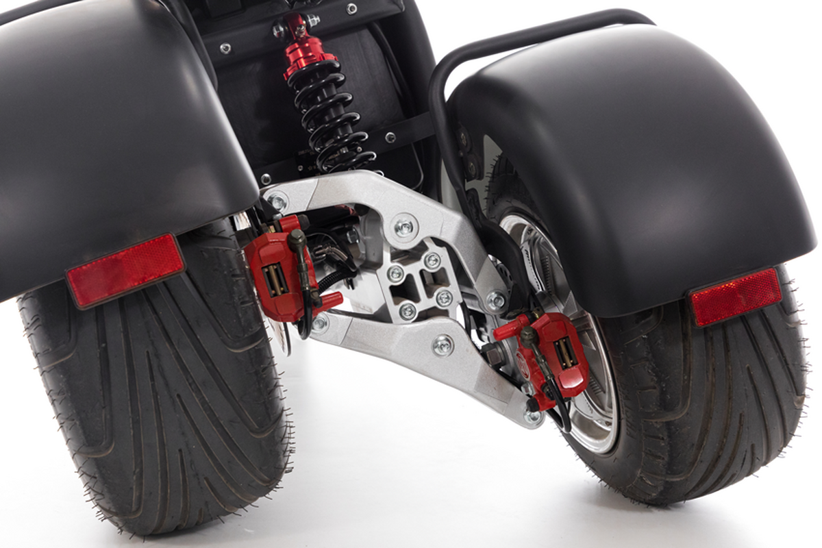 Plynulé naklápění s odpružením kol, výkonný 2000 W motor, maximální rychlost 45 km/h a dojezd až do 80 km zajistí zážitek z jízdy za každých okolností. Elektro verze je navíc skvělou ekologickou alternativou k tradičním dopravním prostředkům.