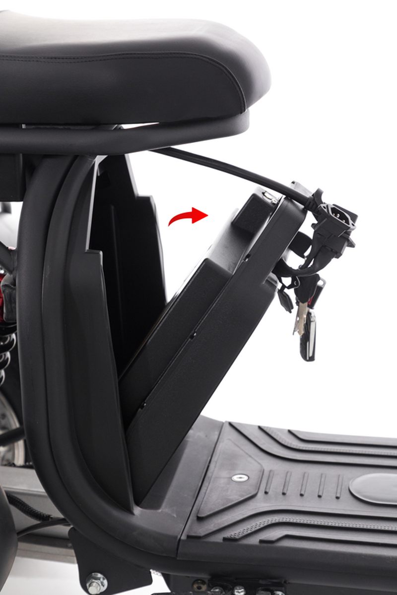 Skútr pohání výkonný 2000 W motor v kombinaci s dvojicí 20 Ah lítium-iontových baterií, které zabezpečují osvědčený výkon a dlouhý dojezd. V ideálních podmínkách ujede vozidlo až 80 km na jedno nabití. Bez obav se proto můžete vydat i na delší trasy.