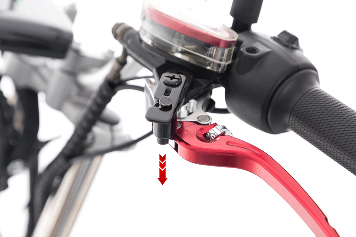 - ruční brzda na řídítkách k úplnému zabrzdění skútru na rovné ploše