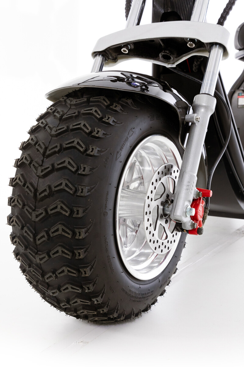 Jeho robustní konstrukce a široké terénní pneumatiky (tzv. fat tyres) poskytují výbornou stabilitu, přilnavost k vozovce a v neposlední řadě i snižují brzdnou dráhu.