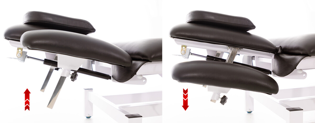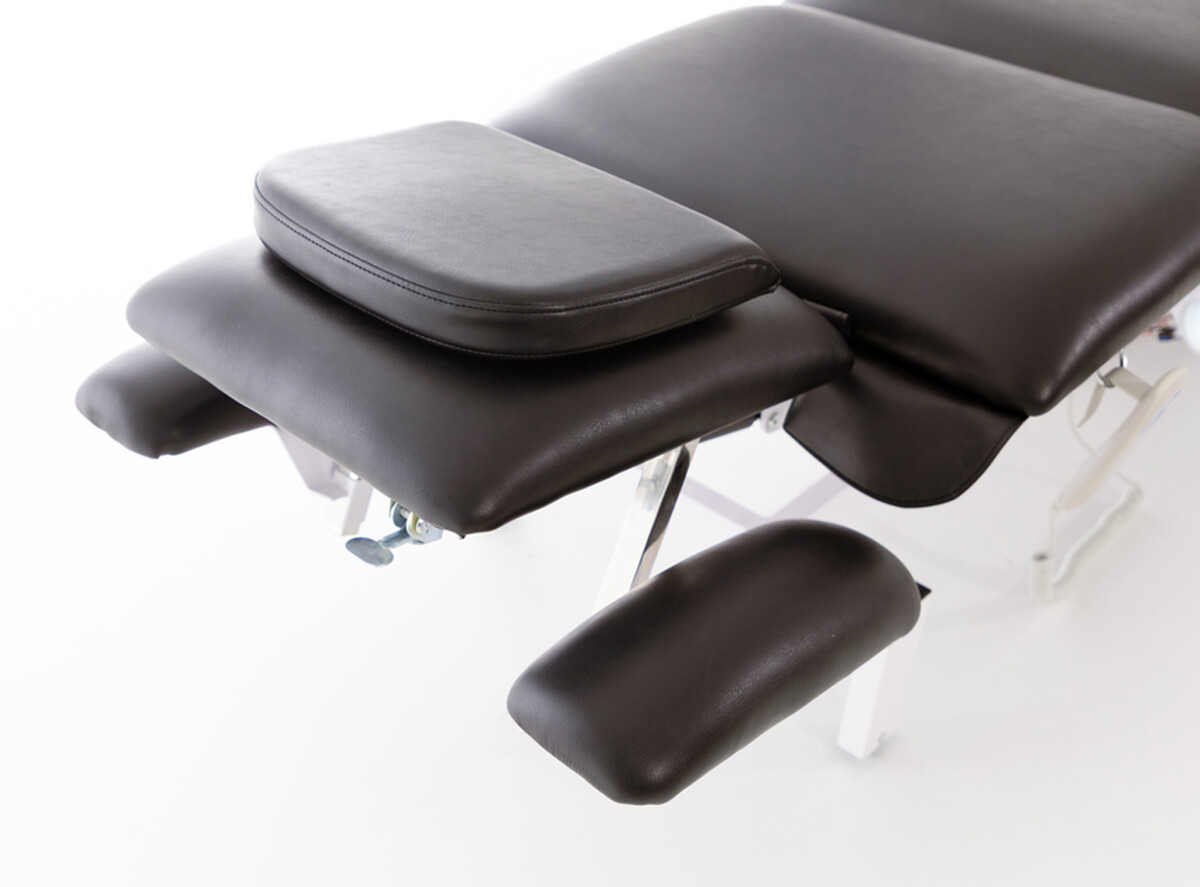 Lůžková část masážního stolu HICO se skládá ze 3 hlavních segmentů, které je možné snadno napolohovat do požadovaného sklonu a přizpůsobit tak tělo pacienta různým typům terapií a ošetření. Variabilita polohování je ideální pro chiropraktickou praxi, mobilizace, uvolňování blokád, klasické nebo speciální masáže, jakož i standardní vyšetření v ambulancích.