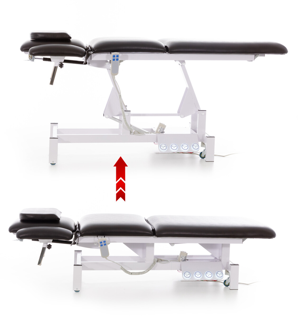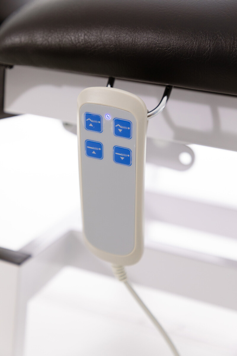 Díky elektrickému ovládání je výrazně snížená fyzická námaha obsluhy a zefektívněná manipulace při terapeutických úkonech. Na ovládání je k dispozici ruční ovladač i nožní spínače s podsvícením (dostupné z obou stran postele), které umožňují nastavit zařízení bez potřeby použití rukou. Na ruční ovladač je na boku stolu připravený závěsný háček, díky kterému je vždy snadno dostupný.