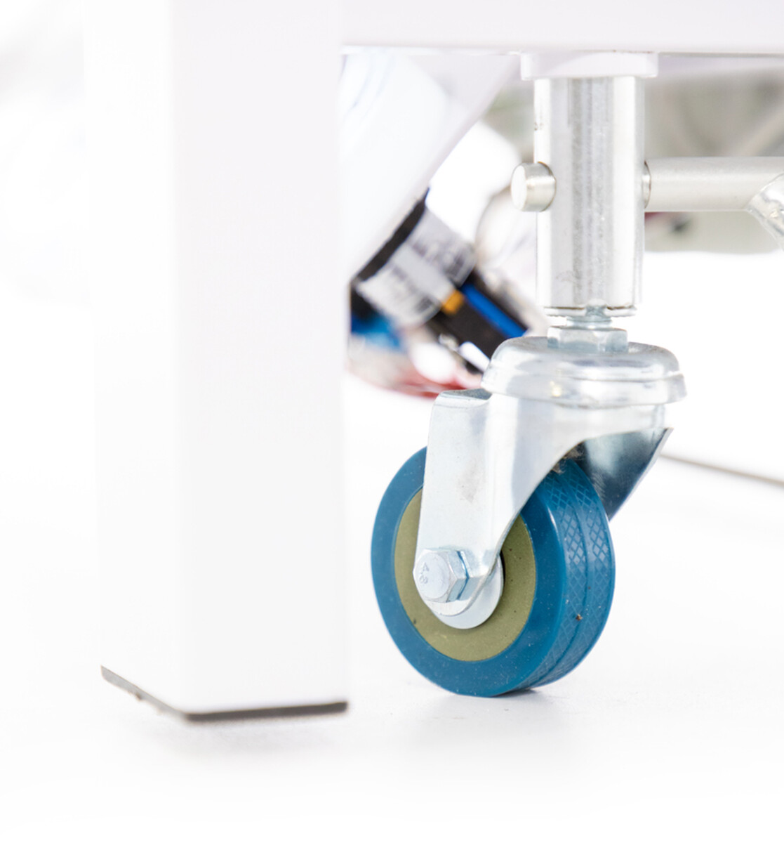 Protiskluzové nožičky zabraňují pohybu stolu při používání a zároveň chrání podlahu před poškrábáním. Nechybí ani dvě integrovaná kolečka s brzdou, která usnadní přemístění postele v případech, jakými jsou například uklízení nebo reorganizace prostoru.