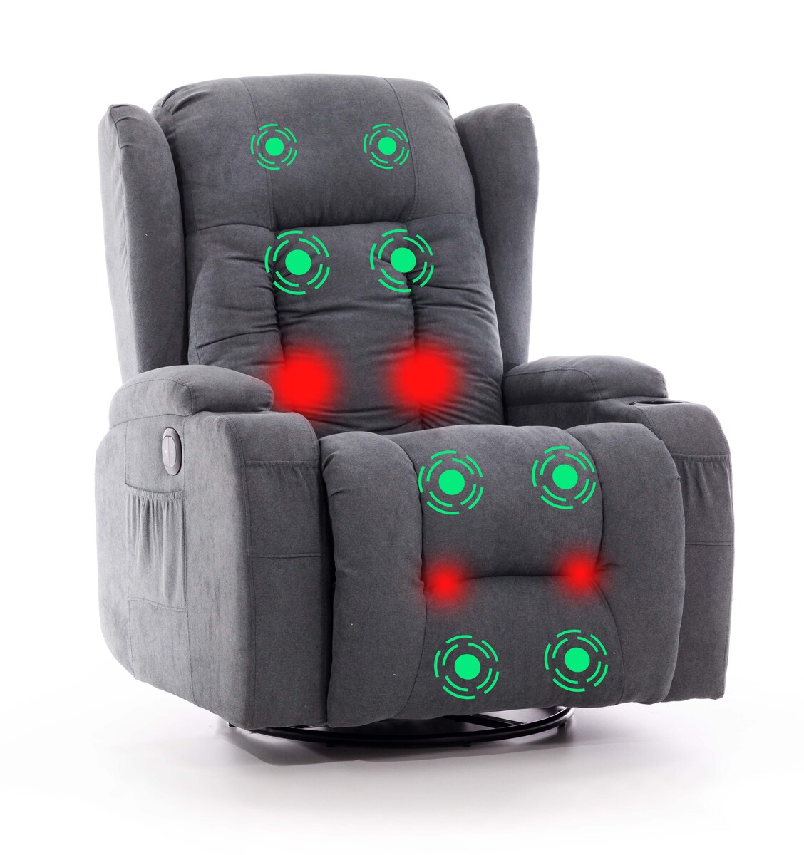 Křeslo disponuje elektricky polohovatelnou opěrkou zad a nohou ovládanou pomocí připojeného ovladače. Na dálkovém ovládání je také možné spustit 8-bodovou masáž a vyhřívání, které poskytnou příjemnou celotělovou masáž.