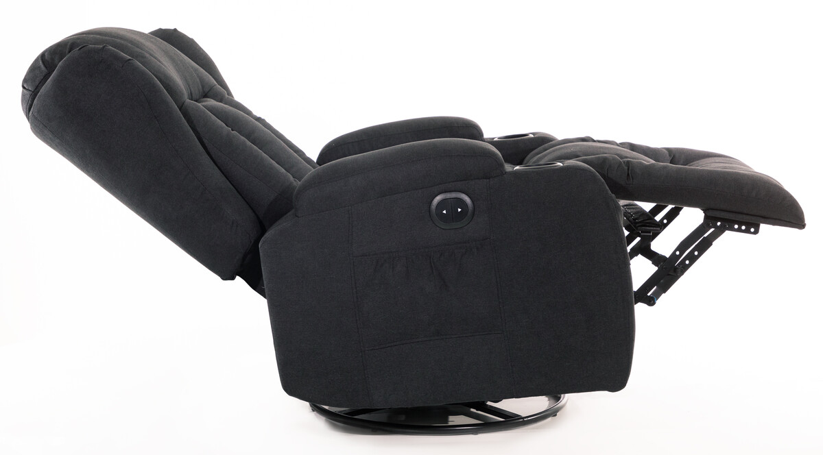Díky provedení v antracitovém látkovém dekoru se bude vyjímat v každém interiéru. V základní poloze slouží jako klasické interiérové křeslo ideální na odpočinek, sledování televize či čtení knih a v relaxační ležící poloze se postará o regeneraci a uvolnění svalstva.