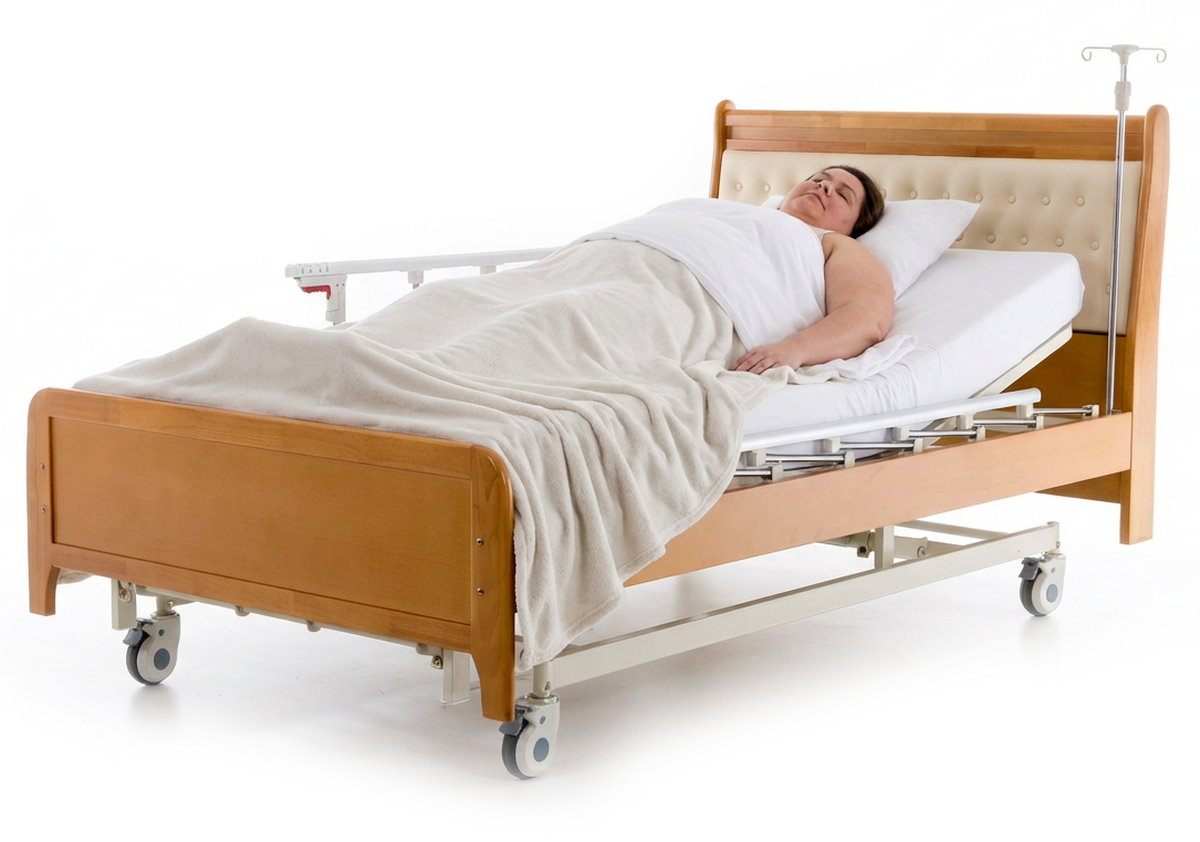 Extra široká zdravotní polohovatelná postel s elektrickým ovládáním v elegantním designu ideální do domácností či ošetřovatelských center.
