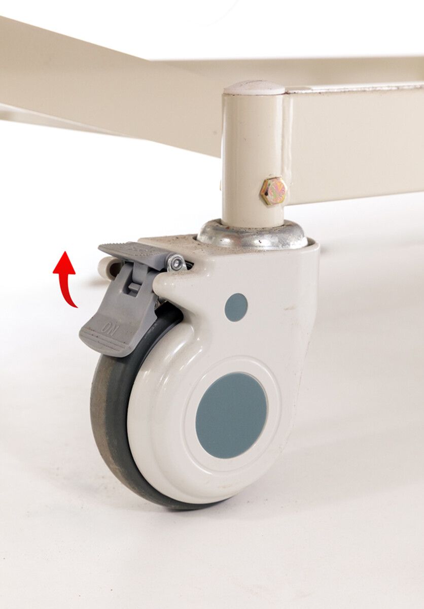 • bezpečná manipulace díky bočním zábranám a kolečkám s brzdami