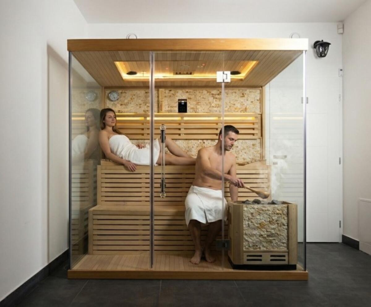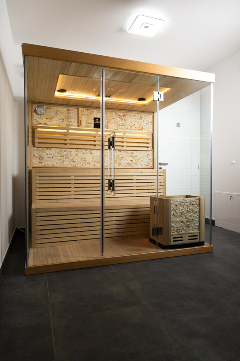Designová skleněná sauna s elektrickou saunovou kamnou spojuje prvotřídní design s autentickým zážitkem ze saunování. Ideální prostředí pro relaxaci, regeneraci a posílení imunity.
