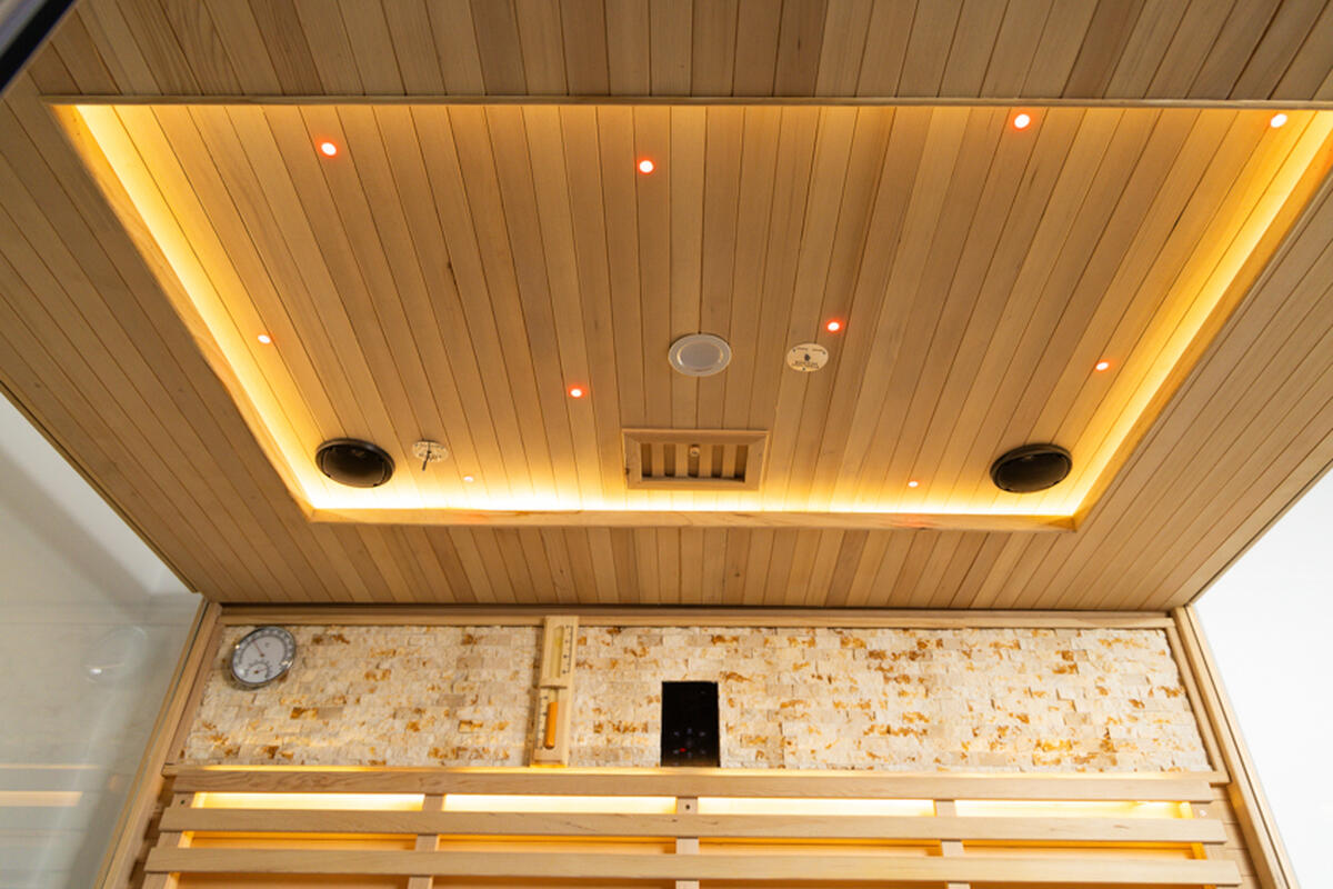 Ovládání sauny je řešeno pomocí Wi-Fi ovládacího panelu, který umožňuje jednoduché a přesné nastavení teploty a provozu. Komfort během saunování zvyšují integrované reproduktory s podporou Bluetooth a USB, díky kterým si můžete vychutnat relaxační hudbu. Příjemnou atmosféru dotváří jemné barevné LED osvětlení.