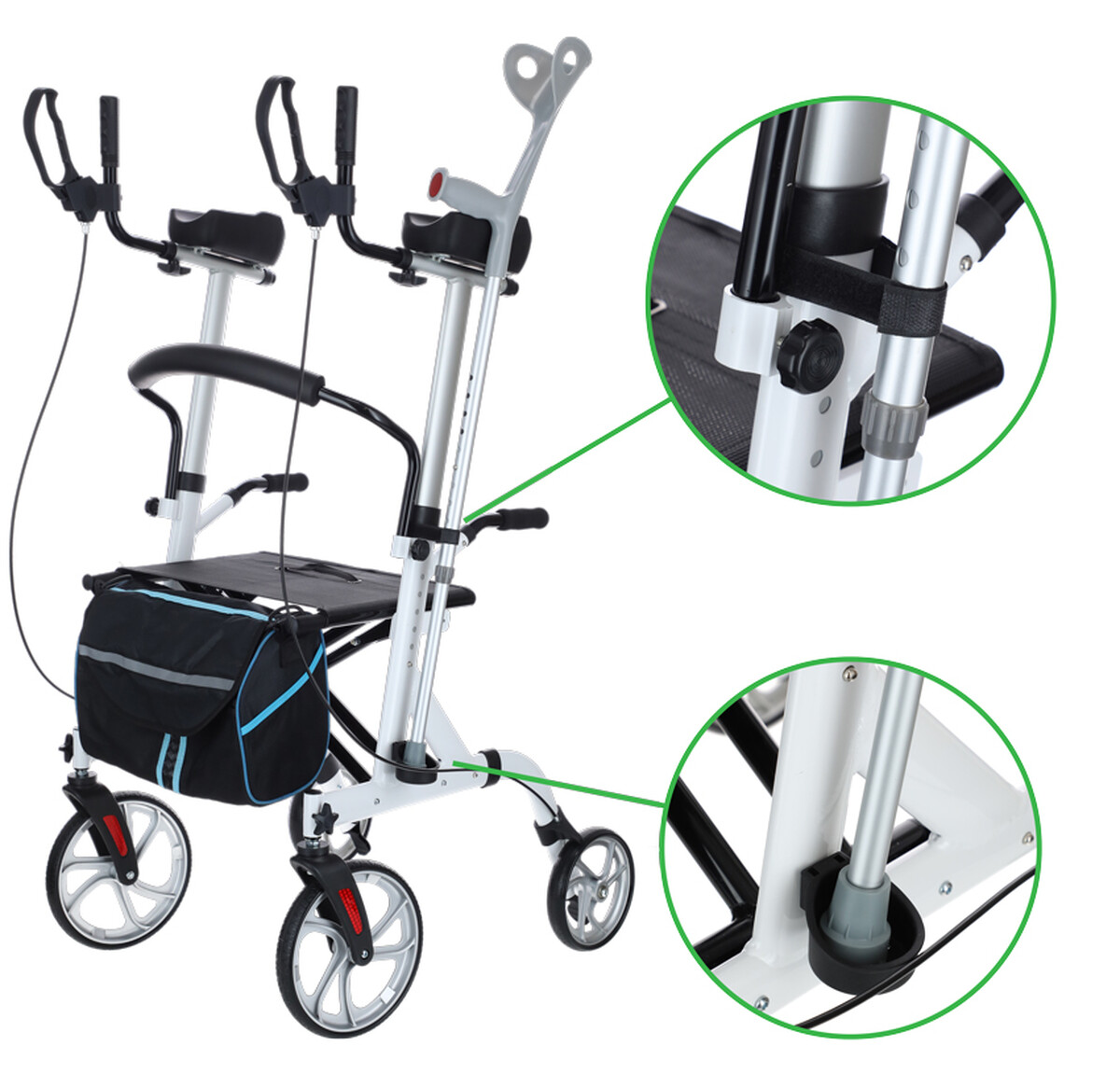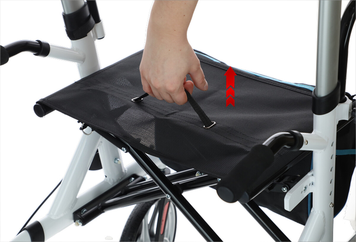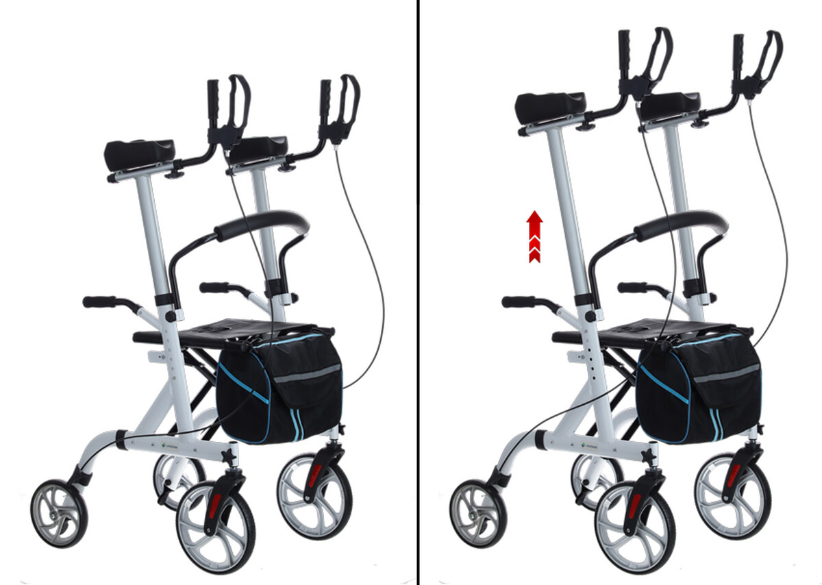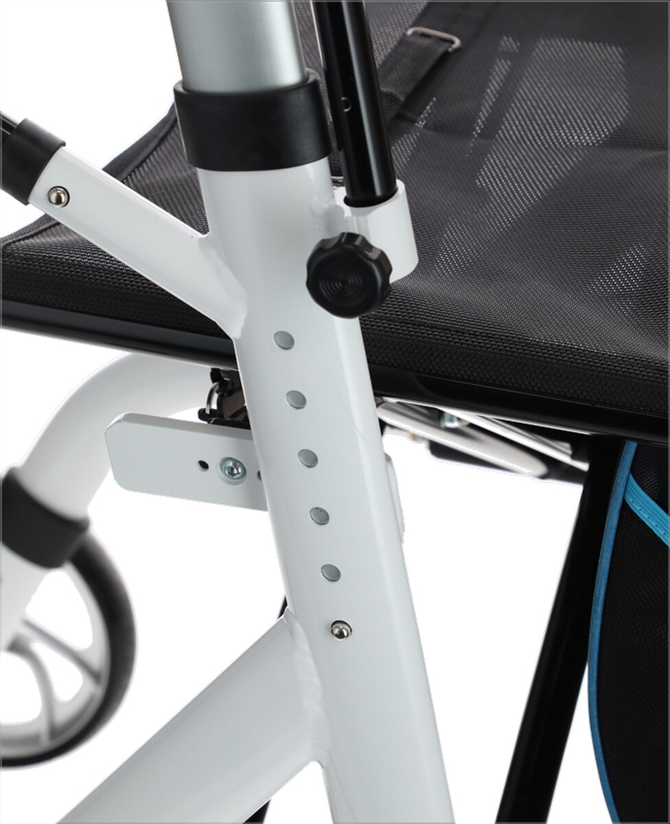 Komfort používání chodítka zaručuje možnost přizpůsobení výšky v 6 stupních, látkové sedadlo, měkčené proudoužené opěrky rukou a ergonomické rukověti s integrovanými brzdami, které zajišťují jednoduché ovládání během chůze. Kromě toho je k dispozici taktéž opěrka zad a při ní další krátké podpůrné rukověti.