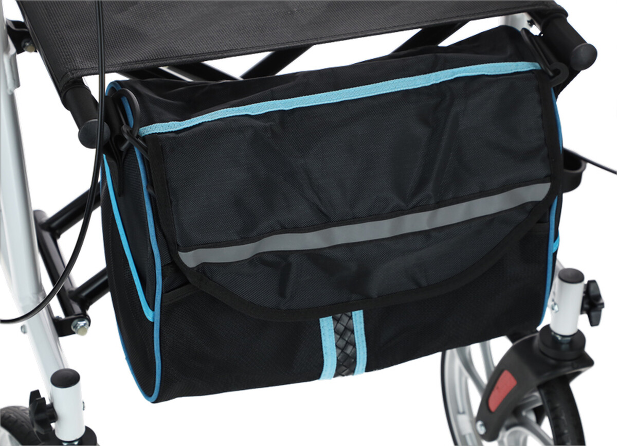 Praktickou součástí chodítka je držák na berlu a nákupní taška, která poskytuje dostatečný úložný prostor na osobní věci nebo drobný nákup.