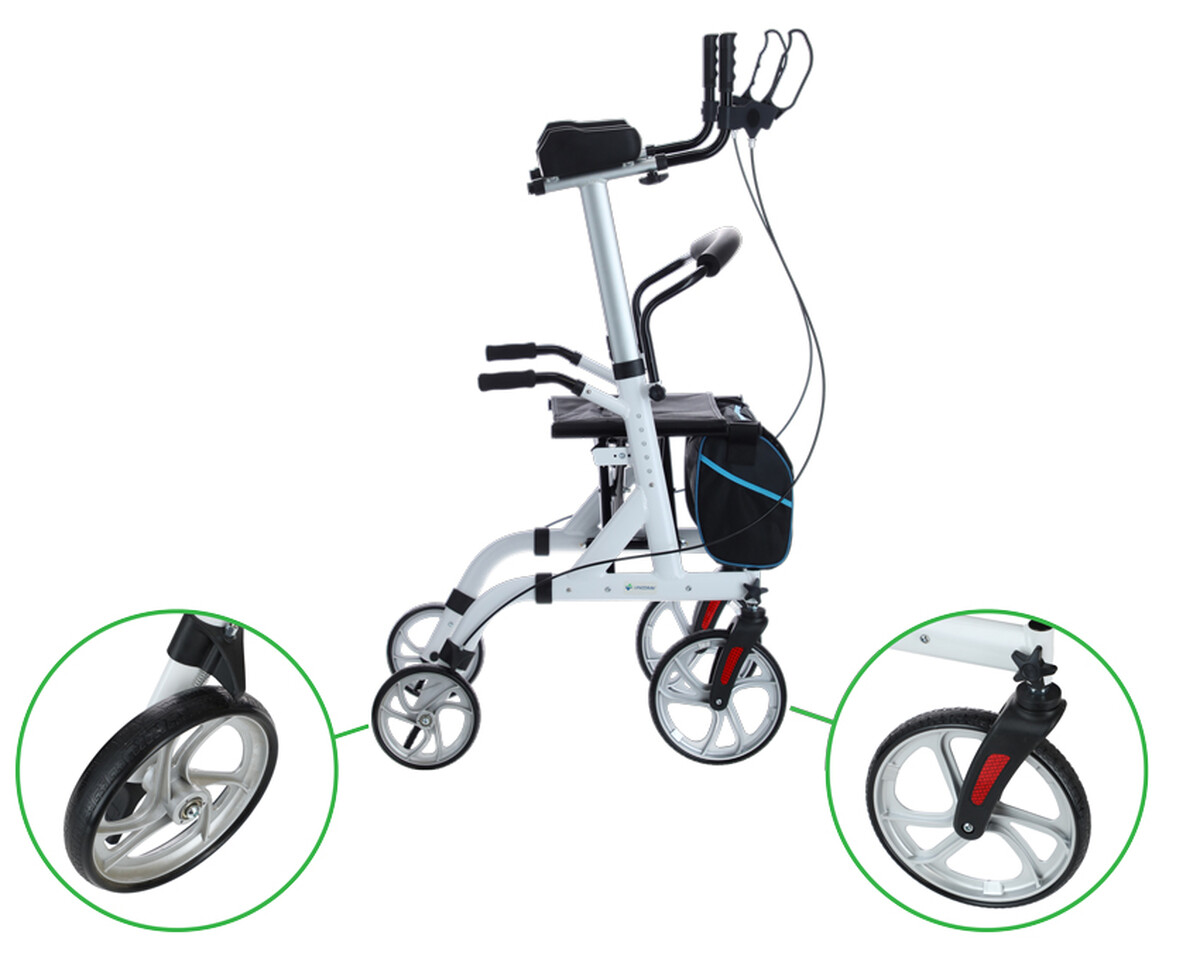 Pojízdné chodítko s prodlouženými loketními opěrkami od značky UNIZDRAV je praktickou rehabilitační pomůckou pro seniory a osoby se sníženou pohyblivostí. Čtyřkolka poskytuje stabilní oporu, usnadňuje udržování vzpřímené polohy a zjednodušuje každodenní pohyb doma i při vycházkách či nákupech.
