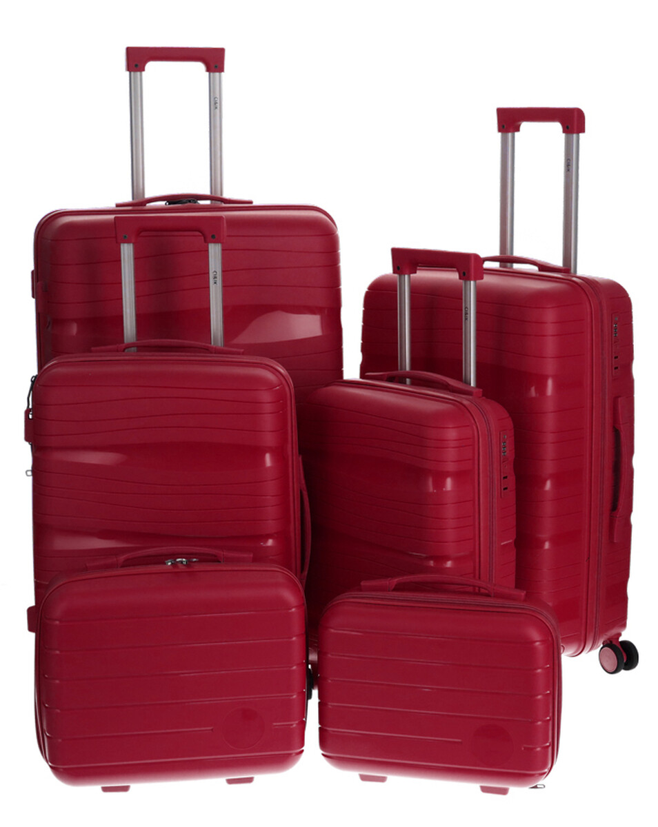 V nabídce najdete šest různých velikostí – od objemných kufrů na dlouhé cesty, přes praktické příruční zavazadlo až po kompaktní kosmetické kufříky.
