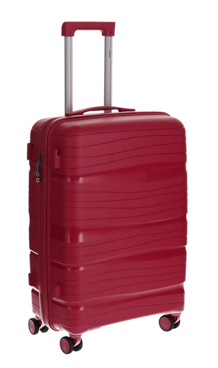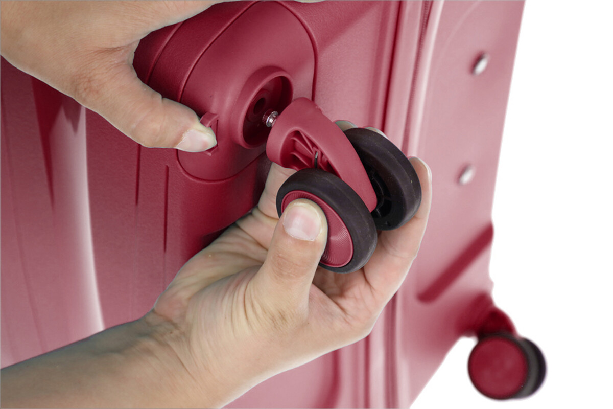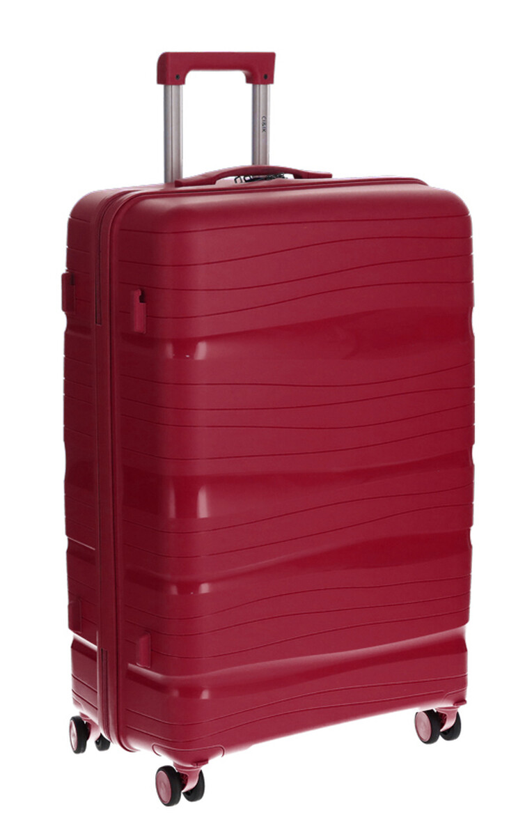 Stylový cestovní kufr s odolným tělem z polypropylenu, otočnými kolečky a ergonomickou rukojetí – ideální pro každou cestu.