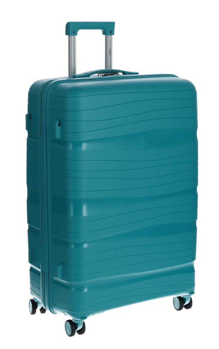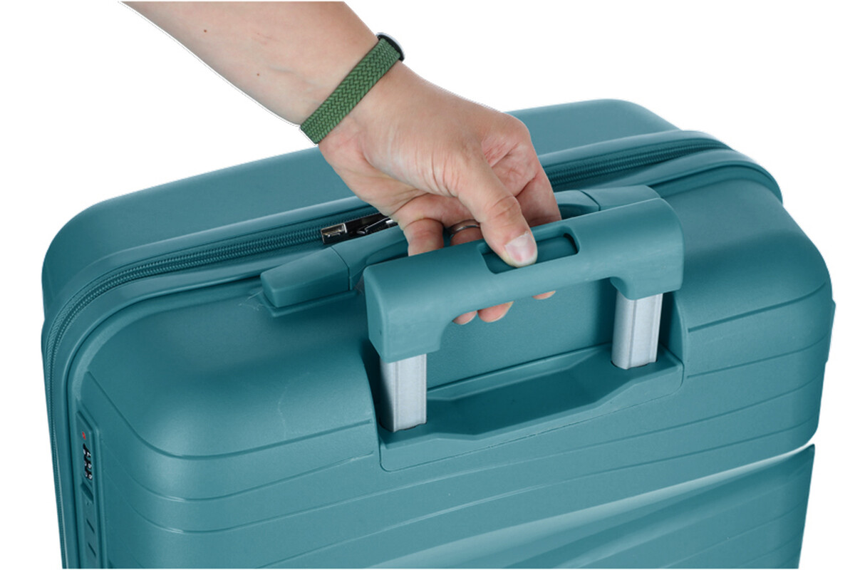 Stylový cestovní kufr s odolným tělem z polypropylenu, otočnými kolečky a ergonomickou rukojetí – ideální pro každou cestu.