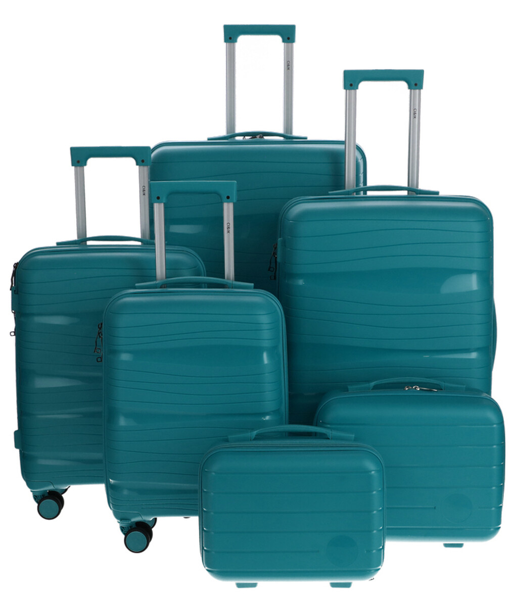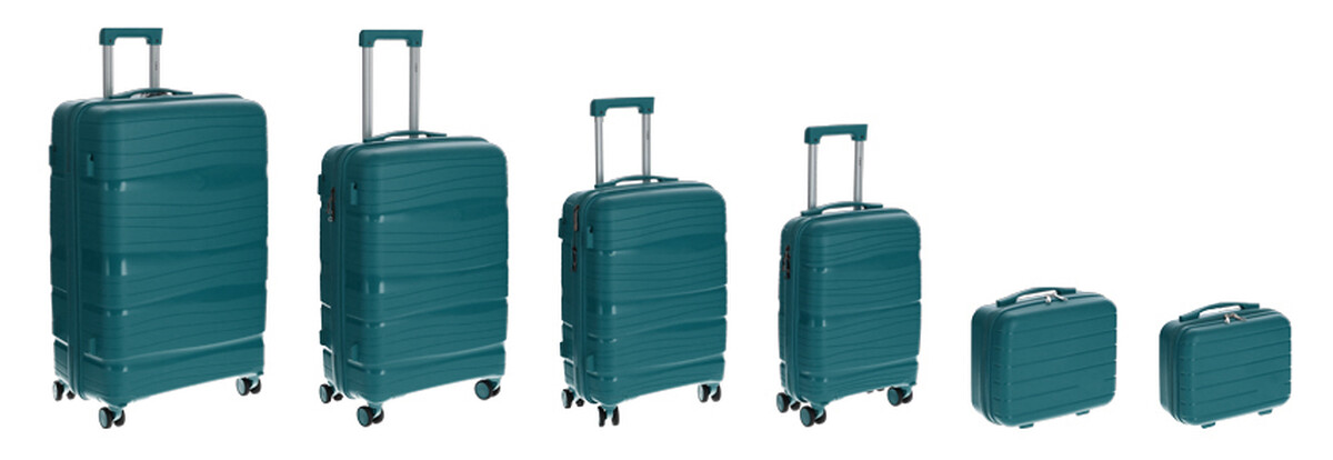 V nabídce najdete šest různých velikostí – od objemných kufrů na dlouhé cesty, přes praktické příruční zavazadlo až po kompaktní kosmetické kufříky.