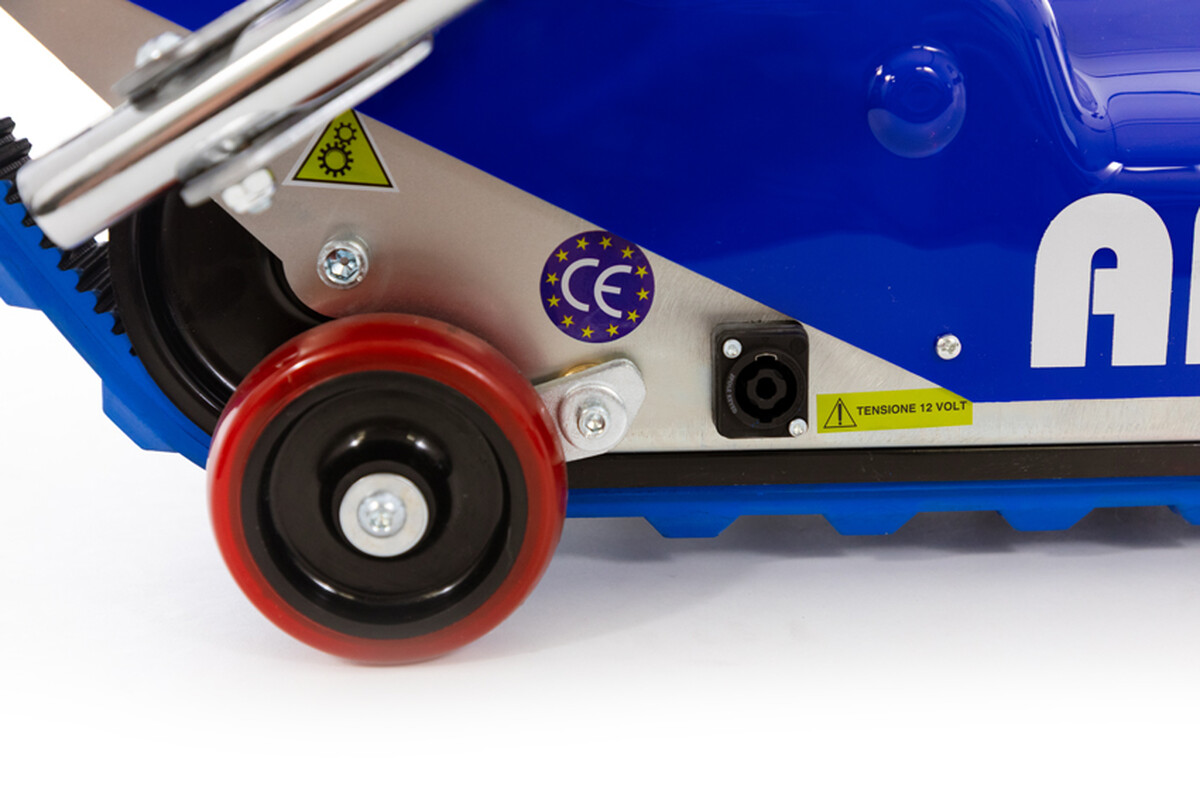 O bezkonkurenčně jednoduché používání se stará patentovaný elektrický zvedací mechanismus se 4 manévrovacími kolečky. Ta umožňují snadné 360° otáčení, což výrazně ulehčuje manipulaci i na užších schodištích se šířkou do 77 cm. Díky této funkci může obsluha bezpečně a přesně otáčet zařízení bez větší fyzické námahy.