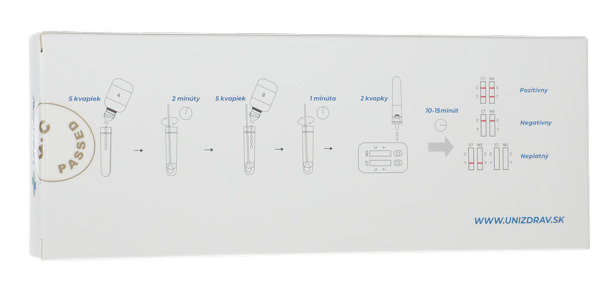 UPOZORNĚNÍ: Tento test je určen k profesionálnímu použití in vitro a slouží jako pomůcka při diagnostice chlamydií (chlamydia trachomatis) a kapavky (neisseria gonorrhoeae) - není určen ani vhodný k domácímu samotestovaní.