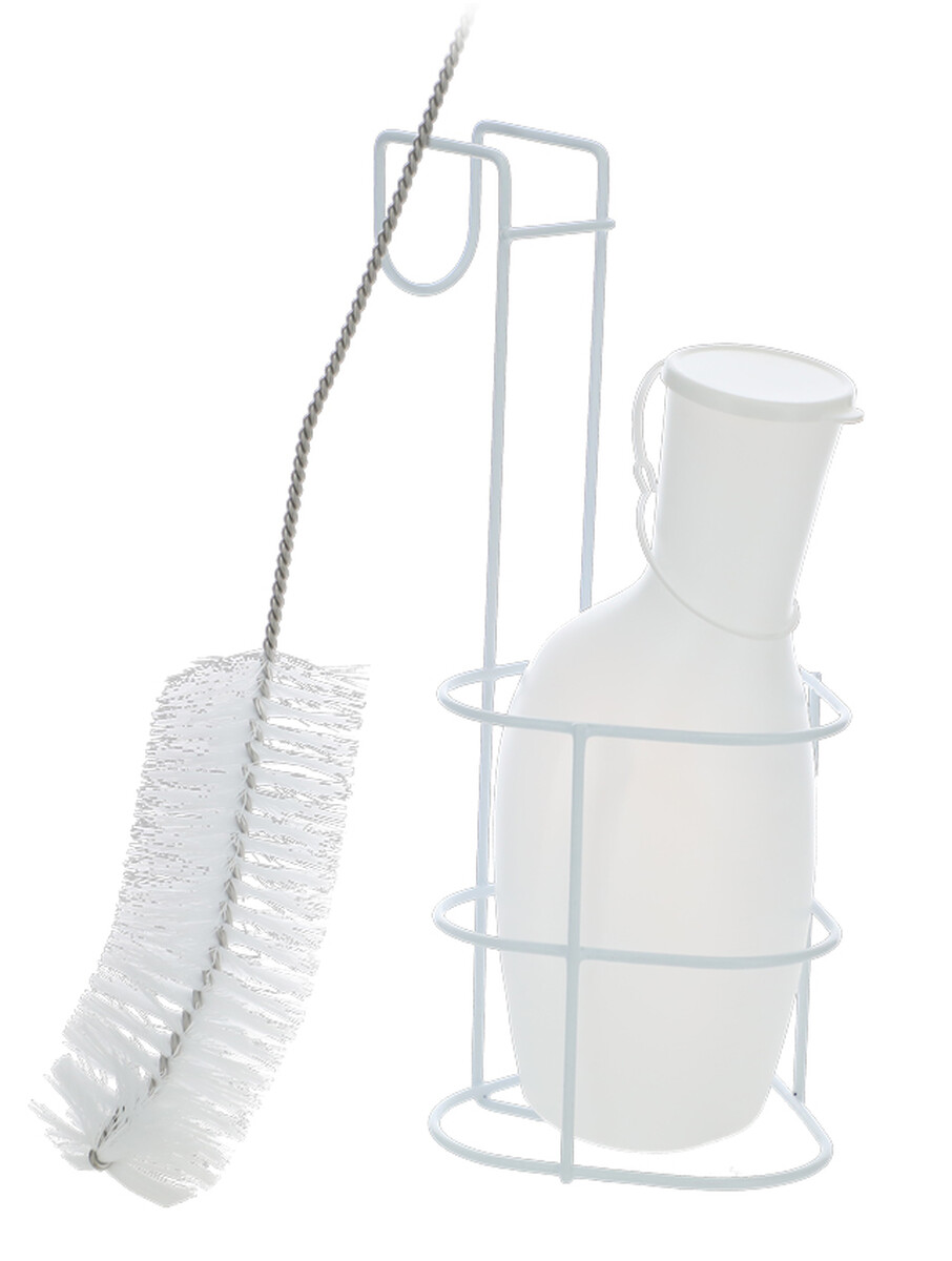 Čištění nádoby na močení zjednoduší kartáč s pevnými štětinami, které se dostanou i do rohů nádoby. Zajistí tak hygienické odstranění usazenin, pomůže eliminovat zápach a prodlouží životnost výrobku.