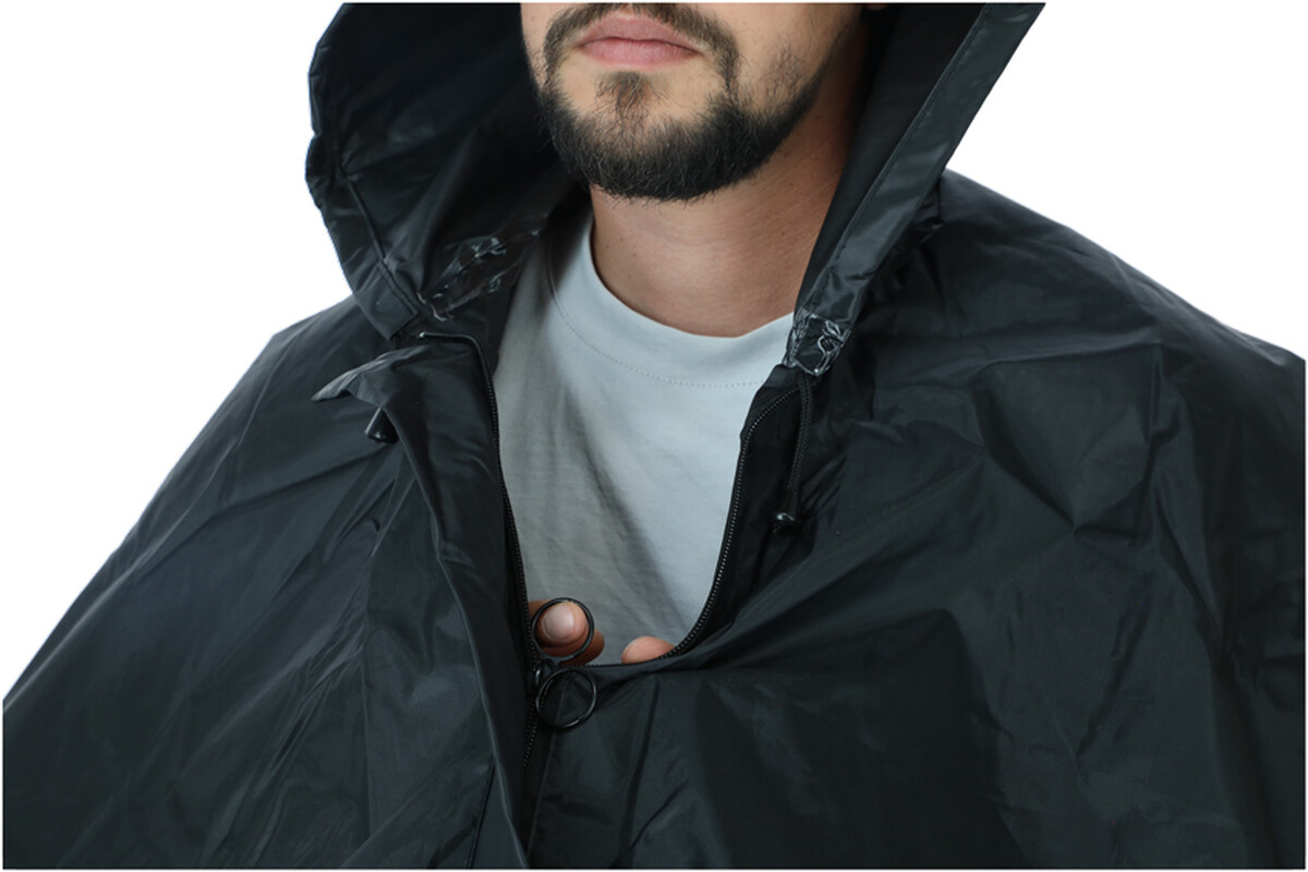 Pončo se díky praktickému zapínání na zips snadno obléká i svléká, neomezuje pohyb a poskytuje kompletní ochranu od hlavy až po nohy. Zips je navíc oboustranný, takže pončo se dá zapnout pohodlně i z vnitřní strany. Nechybí mu ani kapuca s nastavitelným lemem, která zabezpečí pohodlí i během silnějšího větru.