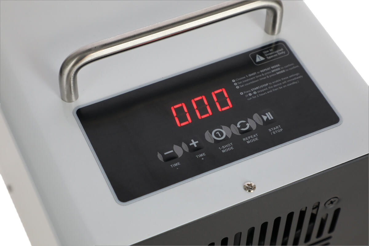 Generátor ozonu 40 g/h je vybaven jednoduchým systémem ovládání a přehledným LED displejem. Nabízí tři režimy provozu – okamžitý start (generování ozonu 15 sekund po zapnutí), jednorázové ošetření a automatické opakování s nastavitelným časovačem. Dobu ozonové úpravy je možné nastavit na 5 až 120 minut, přičemž lze zvolit i časovač odpočítávání – teda přestávku mezi jednotlivými cykly, a to od 10 minut do 24 hodin. Všechny tyto funkce zařízení zaručují plně flexibilní a bezproblémové používání.
