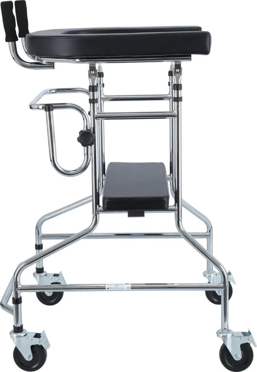 Tento model mobilního chodítka je vybaven čalouněnými předloketními opěrkami s plynulým nastavením výšky, které zaručují pohodlné a ergonomické používání. Praktickým doplňkem je držák na infuzní stojan a též odnímatelné sedátko, které poslouží ke krátkému odpočinku. O jednoduché manévrování s chodítkerm a bezpečné zastavení na místě se postarají otočná kolečka s brzdami.