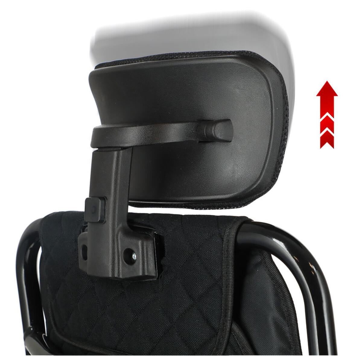 Pohodlí během jízdy poskytuje vyztužené sedadlo, polohovatelná opěrka zad a výškově nastavitelná opěrka hlavy. Lehčí přesedání bude možné díky sklápětelným loketním opěrkám a též sklopné opěrce na nohy. V případě přejezdu přes nerovný terén potěší trojbodový systém odpružení, který efektivně snižuje vibrace a tlumí nárazy.