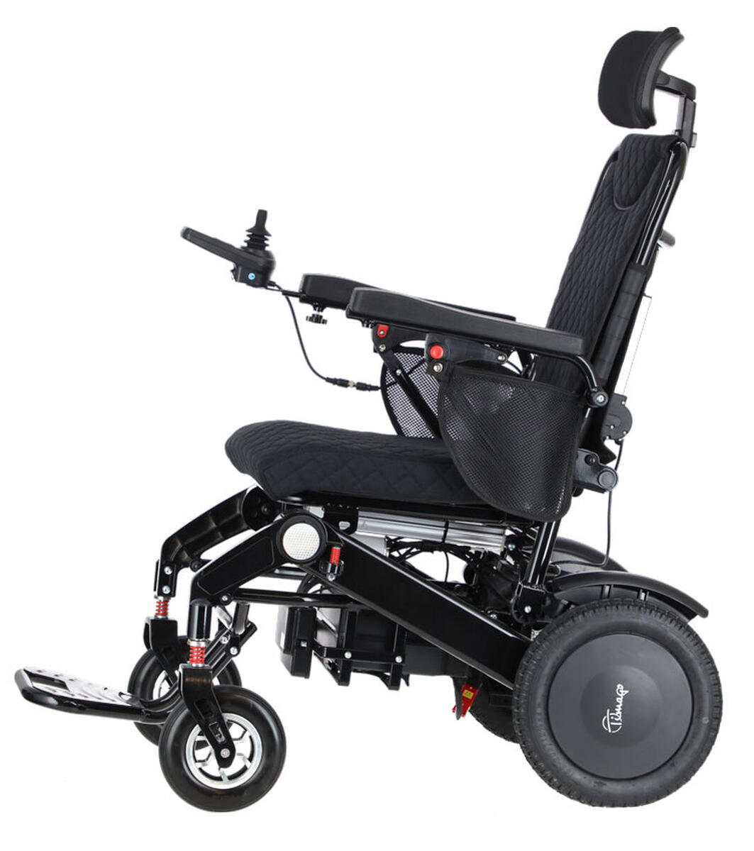 Inteligentní elektrický invalidní vozík s unikátní funkcí samoskládání a dálkovým Bluetooth ovladačem pro asistenta.