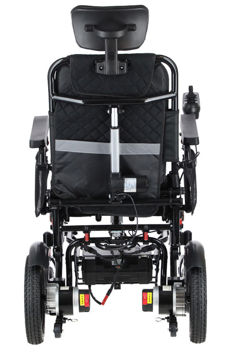 O jistotu při každém zastavení se stará elektromagnetická brzda a o plynulou jízdu na různych typech povrchů zadní pneumatické a přední pevná kola s výbornou přilnavostí. Bezpečnostní prvky doplňují kolečka proti převrácení, upínací pás pro pacienta, klakson, LED osvětlení a odrazky pro lepší viditelnost.