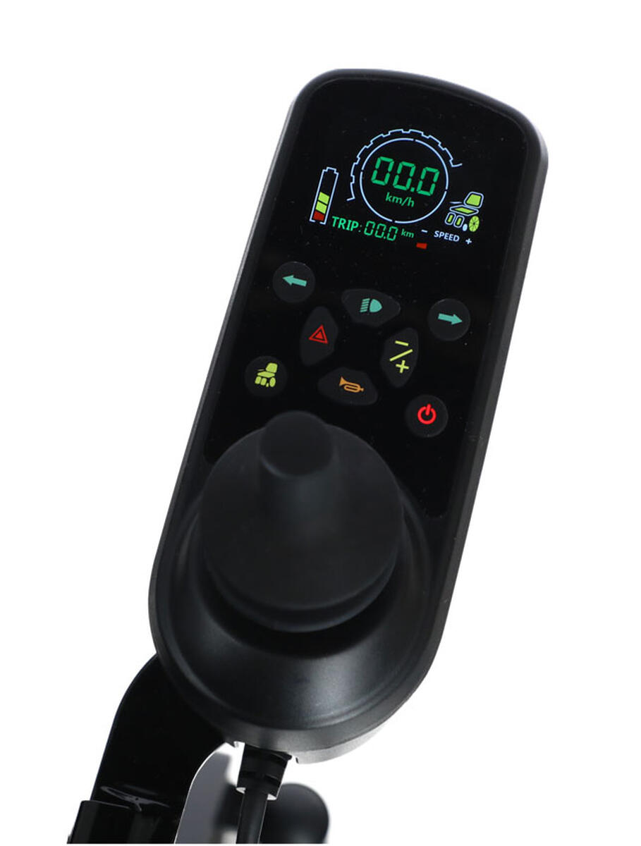 Obsluha invalidního vozíku FortiGo je jednoduchá i pro pacienta. Intuitivní ovládací modul – joystick s LCD displejem umožňuje plynulé řízení pohybu dopředu, dozadu i do stran. Pacient si může vybrat z 5 úrovní rychlosti podle potřeby a aktuálních podmínek v terénu. Joystick je navíc možné umístit na pravou i levou stranu.