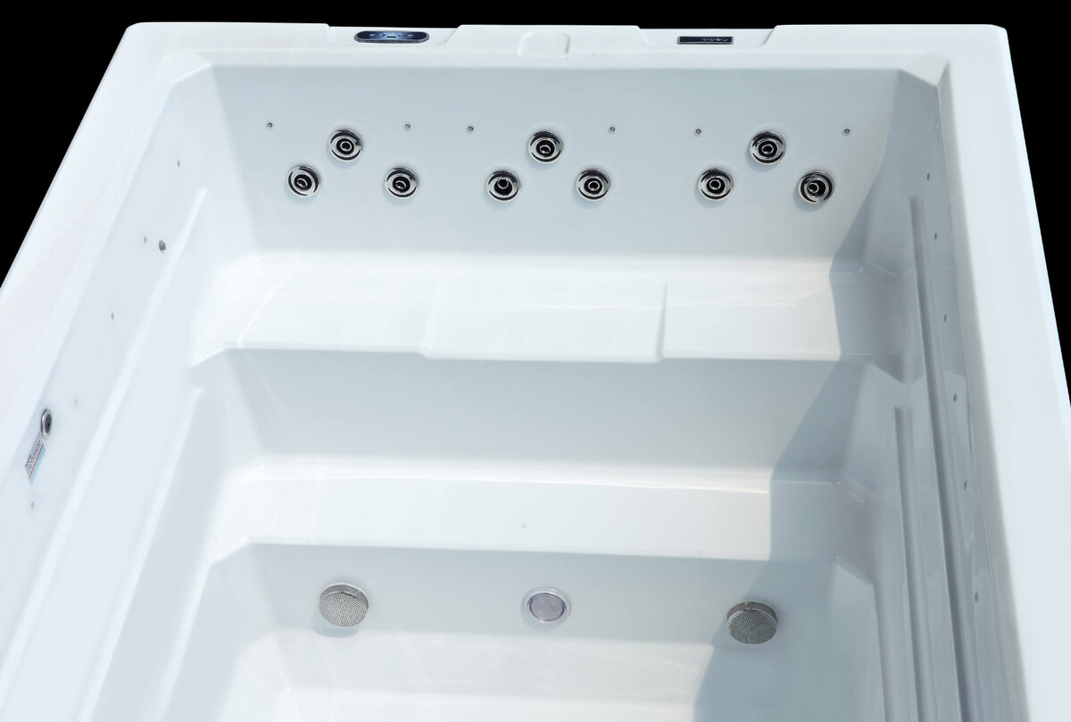 Po tréninku nebo náročném dni oceníte strategicky umístěné masážní trysky, které uvolní svalové napětí, podpoří regeneraci a zlepší prokrvení. Připravených je 5 směrových trysek na bodovú masáž a 4 rotační trysky na pulsující masáž širších oblastí těla. Stačí se jen usadit a užívat si příjemnou hydromasáž.