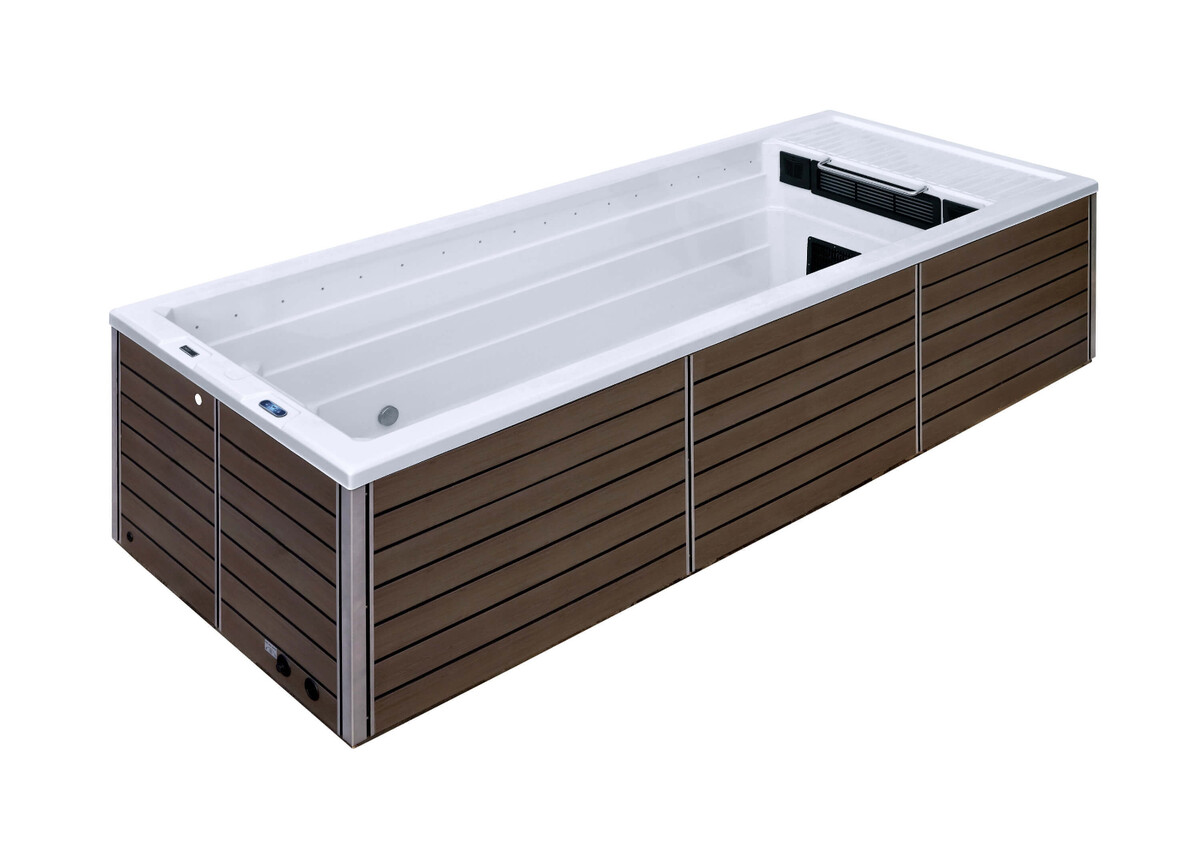 Integrovaný výkonný protiproudý systém vytváří plynulý a rovnoměrný tok vody, který umožňuje komfortní plavání na místě. Vrtulový pohon vytváří silný, no zato rovnoměrný proud vody bez víření, kterým zabezpečuje přirozený pocit při plavání.