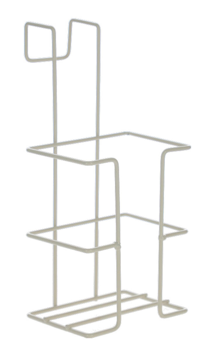 Držák nádoby na moč je vyroben z bílého lakovaného kovu s povrchovou úpravou práškovou technologií. Vnitřní rozměry stojanu jsou 12 x 15,5 x 8,5 cm a hloubka háku k zavěšení je 4 cm.