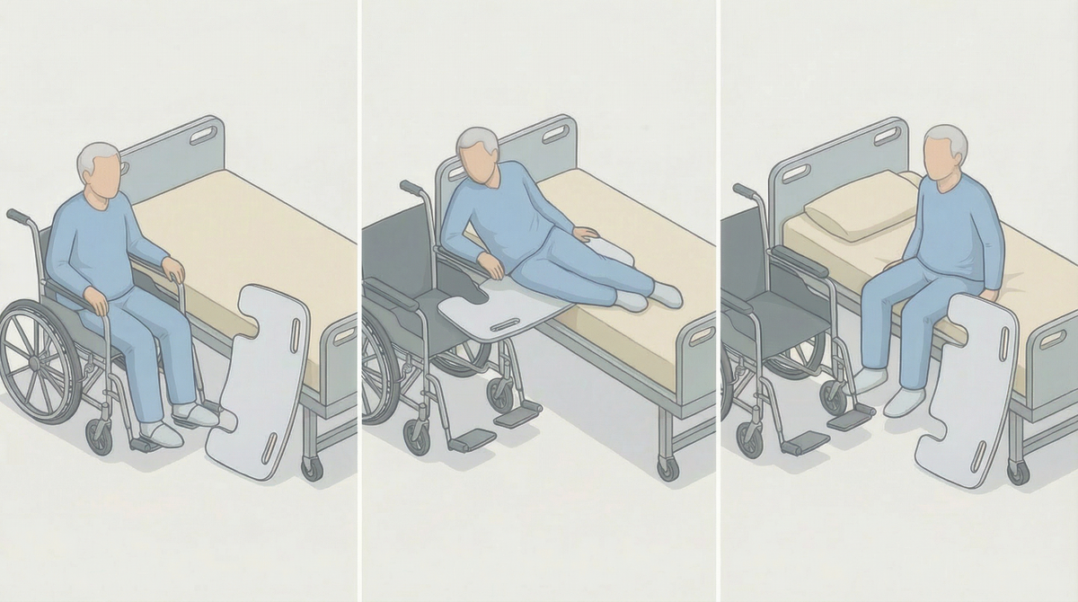 - praktická pomůcka na přesun pacienta, například z invalidního vozíku do postele, auta, na stoličku nebo toaletu