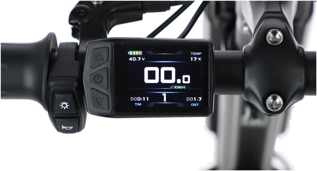 Barevný TFT displej s podsvícením zobrazuje všechny důležité údaje jízdy, jakými jsou například aktuální rychlost, ujetá vzdálenost, stav baterie, čas jízdy, teplota prostředí nebo motoru. Displej je navíc vybavený USB portem, přes který si můžete pohodlně nabít mobilní telefon.