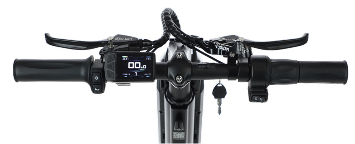 Celé ovládání se nachází na rukovětích – displej s tlačítky, ovládání rychlosti i brzdy jsou vždy po ruce, což zaručuje pohodlí a maximální kontrolu během používání. Nechybí ani praktická funkce tempomatu, která umožní udržovat stálou rychlost bez neustálého ovládání.