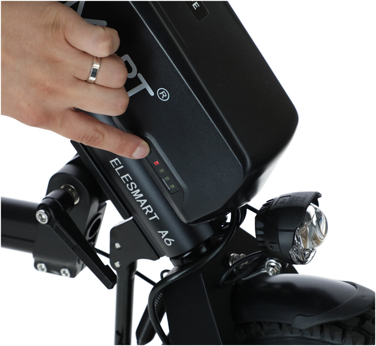 V pohonu se nachází nabíjecí litiová baterie s kapacitou 12,8 Ah a úsporný 500 W motor, který si hravě poradí i se stoupáním do svahu se sklonem 8 – 10°. Maximální rychlost elektrického přídavného pohonu Elesmart A6 je 25 km/h a dojezd na jedno nabití přibližně 60 km (v závislosti od aktuálních podmínek vozovky, zatížení a stylu jízdy).