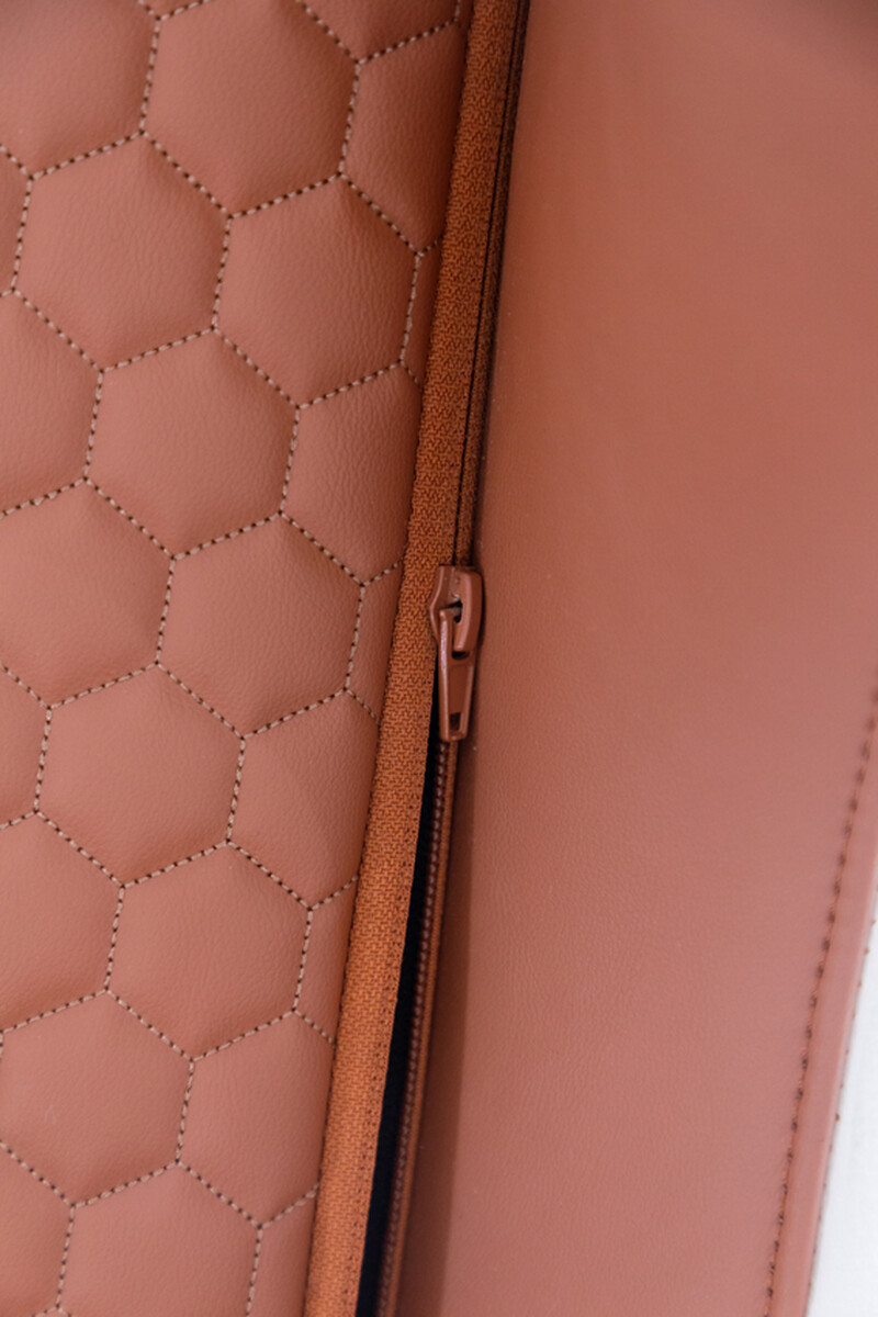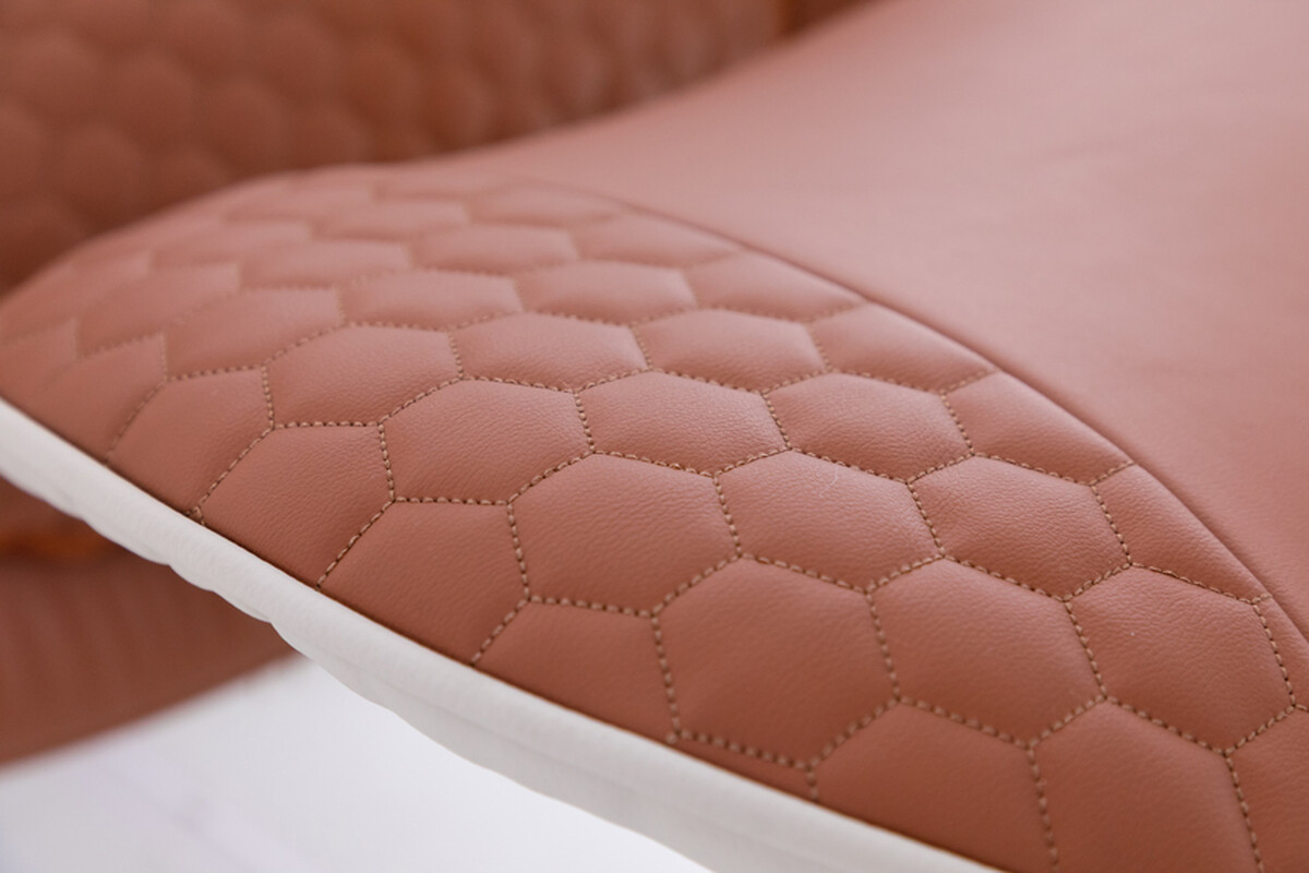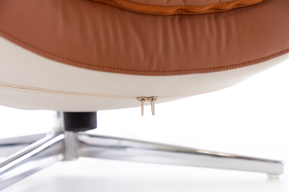 Kombinace kůže, textilu a odolného rámu z nerezavějící oceli zabezpečuje křeslu pohodlí, dlouhou životnost a nadčasový vzhled, který přirozeně zapadne do domácnosti, kanceláře nebo různých veřejných oddychových prostorů. Rozměry 105 x 62 x 104 cm přitom neuberou z místa ani v menší místnosti.