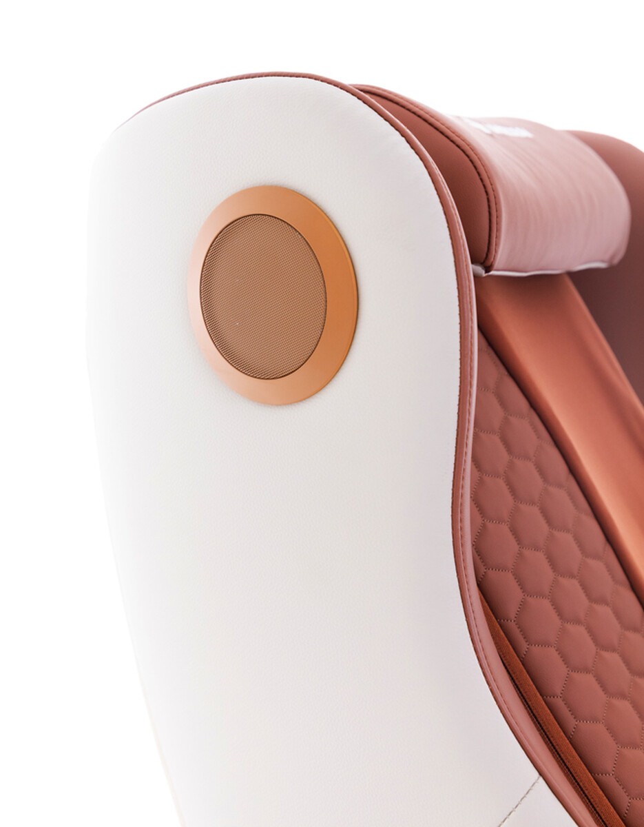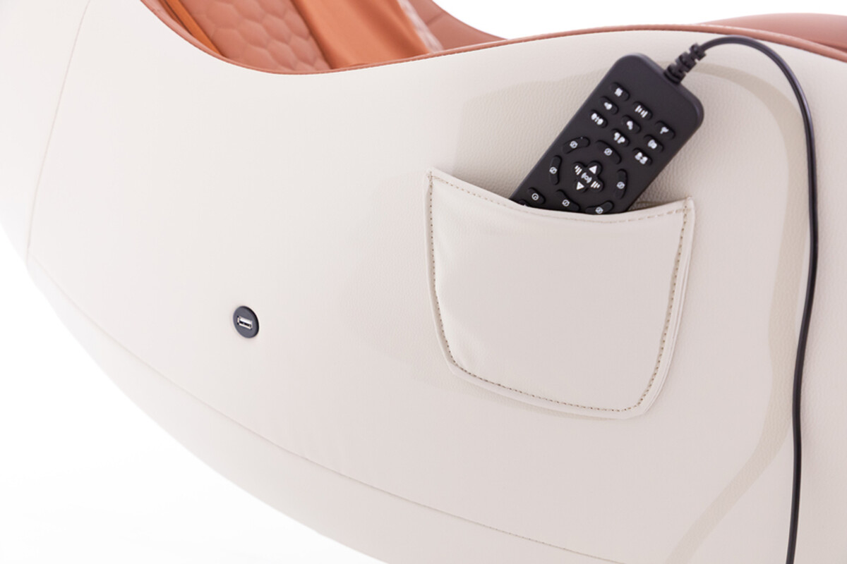 Masážní křeslo s podnožkou je doplněno hned několika užitečnými detaily. Vestavěné reproduktory s Bluetooth spojením vám umožní užít si masáž při oblíbené hudbě a USB nabíjecí port zase pohodlné nabití telefonu nebo jiného zařízení.