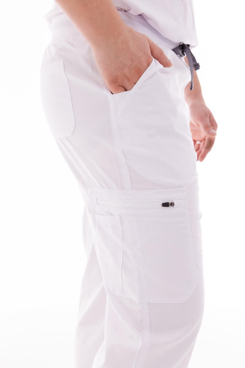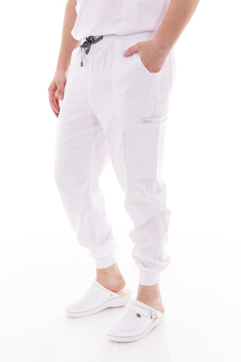 Zdravotnícké kalhoty Unidress Premium soft v bílé barvě byli navrhnuté s ohledem na funkčnost a stylovost. Oblíbený střih typu Jogger s gumičkou v páse a na kotníkách je mimořádně pohodlný a během nošení neomezuje v pohybu, čož oceníte hlavně během dlouhých pracovních směn. Tento univerzální střih je vhodný pro muže i ženy.