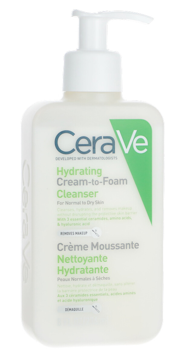 Hydratační čistící pěnivý krém od značky CeraVe byl vyvinut ve spolupráci s dermatology k efektivnímu čištění pleti bez narušení ochranné kožní bariéry. Jeho povrchově aktivní látka na bázi aminokyselin transformuje krém na pěnu, která jemně čistí pokožku a odstraňuje z ní nečistoty, zbytky ochranných krémů proti slunci, mastnotu i make-up.