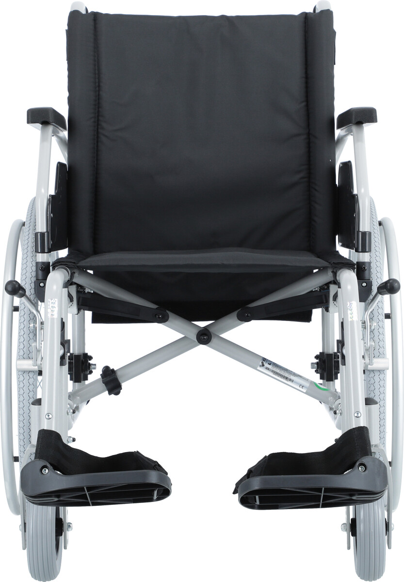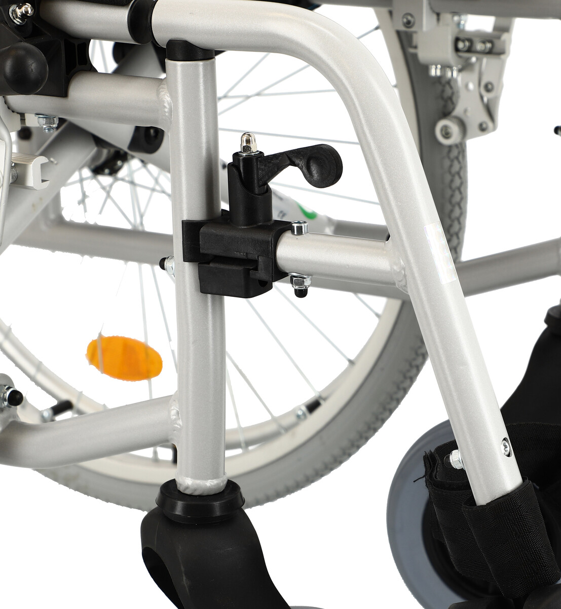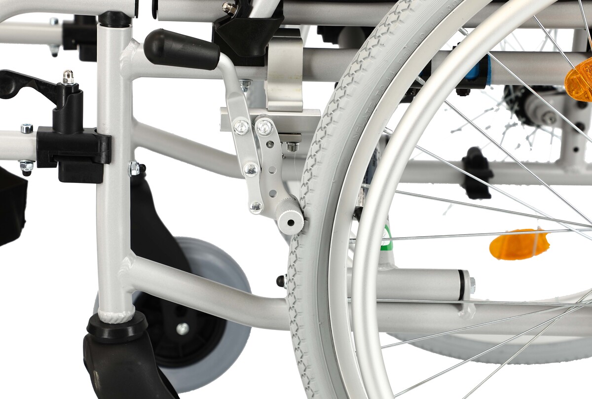 Opěrka nohou je u vozíku odnímatelná a sklopná do strany. Pro lepší nastupování se stoupačky vyklápějí směrem nahoru a do strany. Vozík je vybaven odnímatelnými zadními koly, které se demontují zatlačením pojistky a vysunutím kola.
