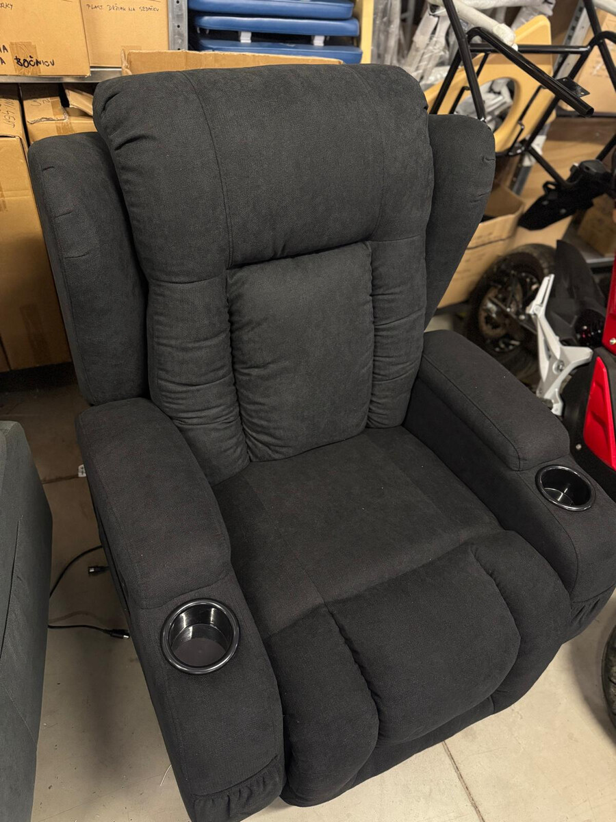 Díky provedení v černém látkovém dekoru se bude vyjímat v každém interiéru. V základní poloze slouží jako klasické interiérové křeslo ideální na odpočinek, sledování televize či čtení knih a v relaxační ležící poloze se postará o regeneraci a uvolnění svalstva.