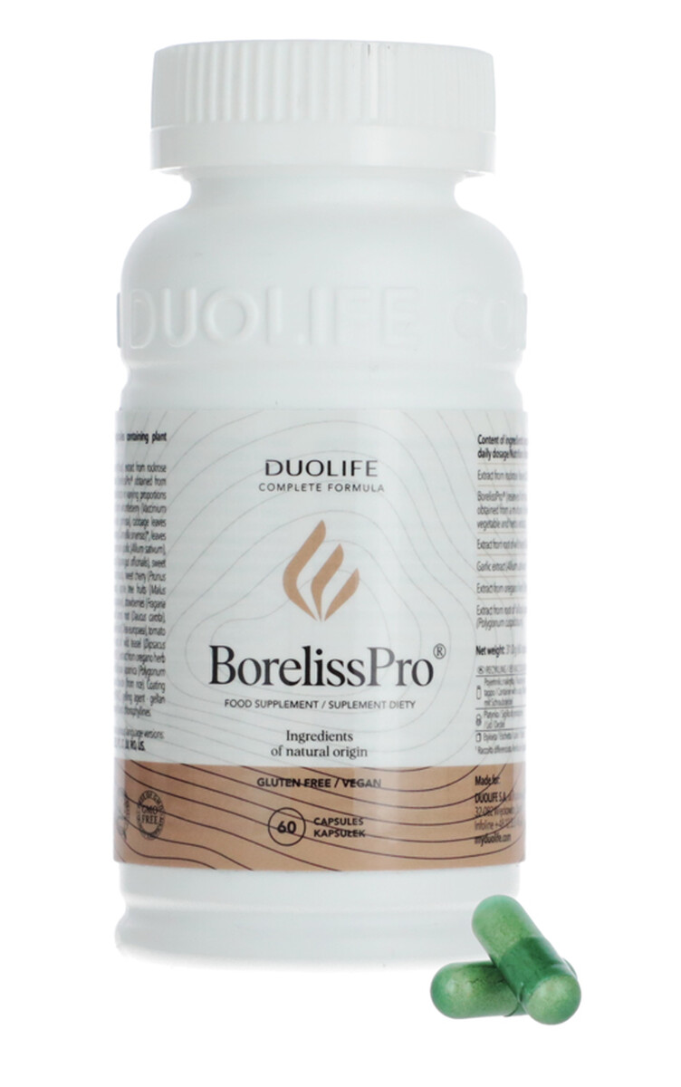 Doplněk stravy BorelissPro kombinuje tradiční bylinné znalosti s moderní vědou. Neobsahuje žádné umělé konzervační látky, umělá plniva ani GMO. Forma kapslí s opžděným uvolňováním zajišťuje postupné vstřebávání aktivních látek a nezatěžuje trávení.